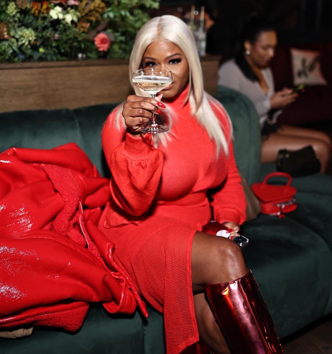 Fashion Bomb CEO, Claire Sulmers was able to make an appearance to help ring in Issa Rae’s celebratory moment in a red Ricki Brazil knit dress available at beautylifefunshop.com.