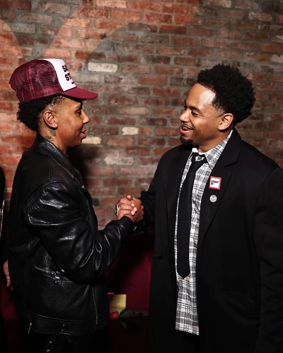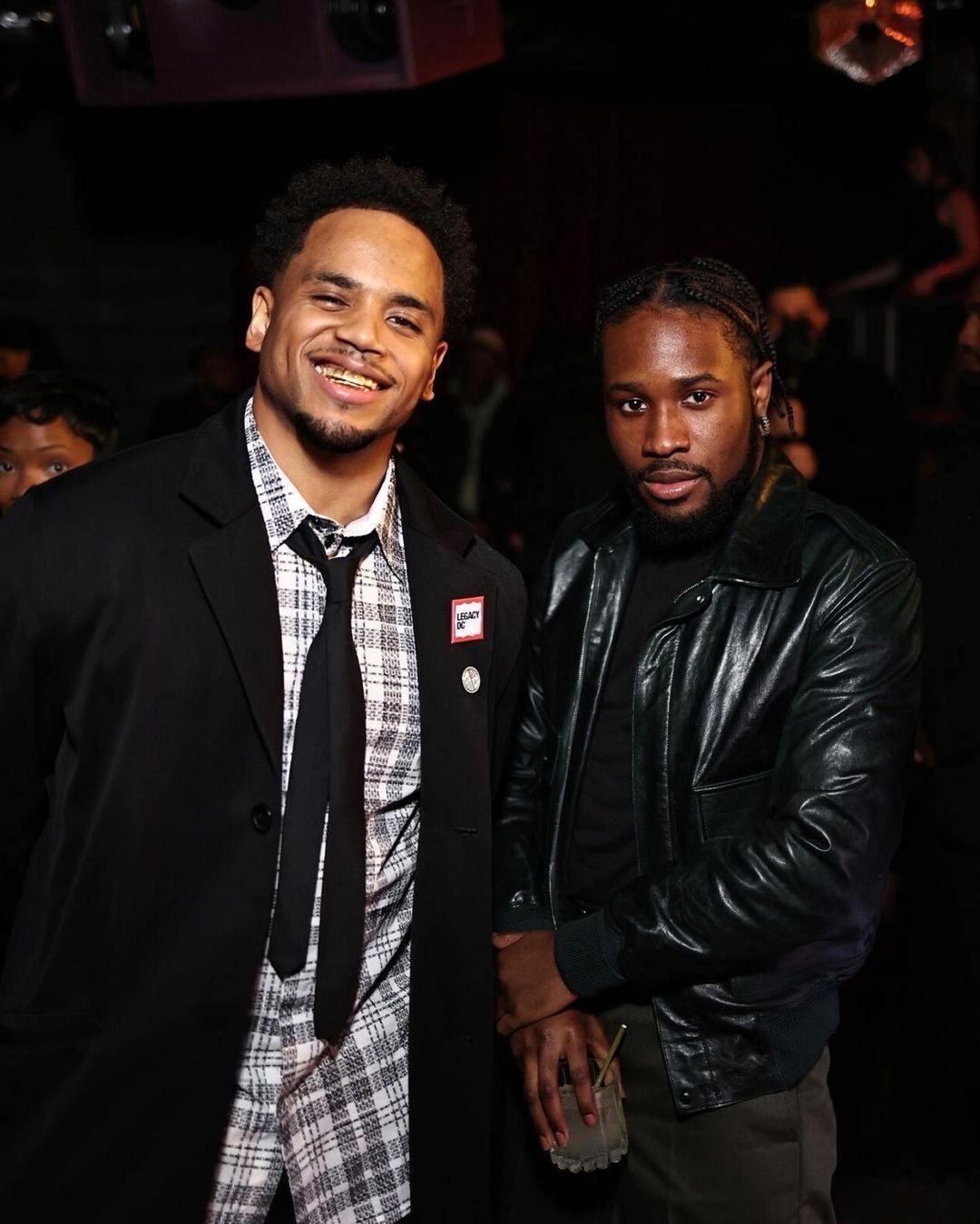 Fashion Designer, LaQuan Smith made a stylish arrival to the event in a mahogany brown turtle neck that he layered with a chocolate leather jacket, and paired with medium washed jeans. His black and white printed boots added a playful aesthetic to his ultra modern ensemble.