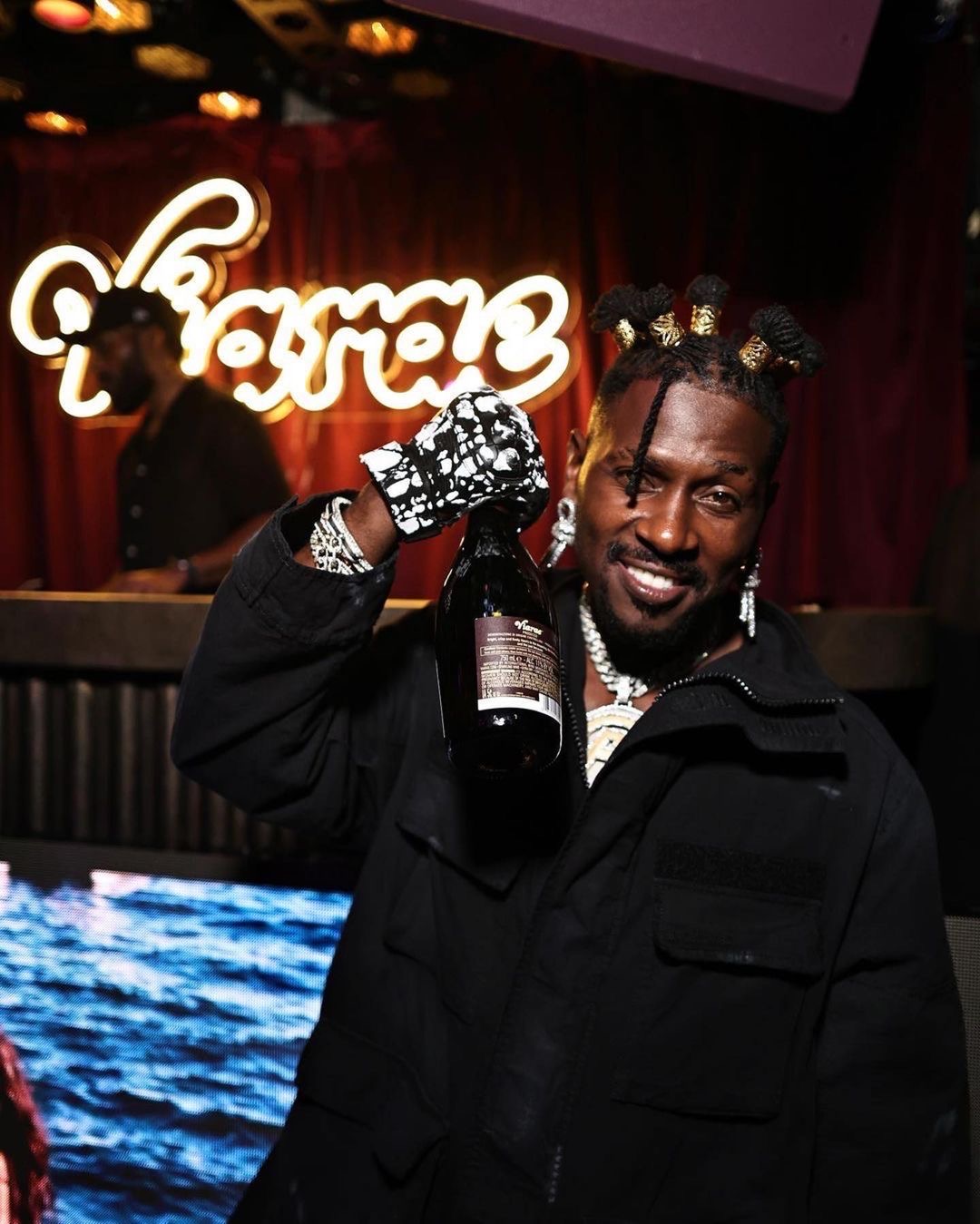 Also opting for black with an innovative hair style that included bantu knots wrapped with gold clips was football star, Antonio Brown who held his Viarae wine bottle high in the sky as he partied the night away.