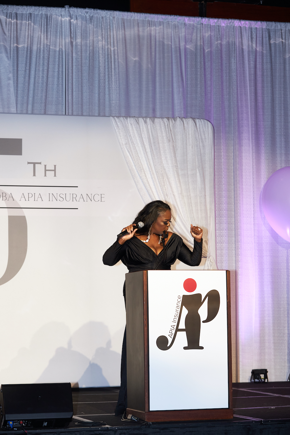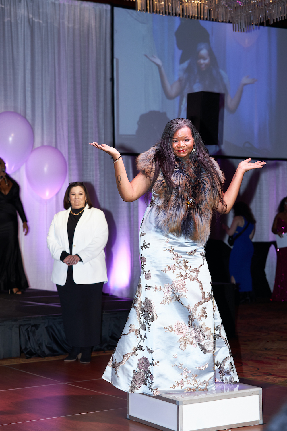 The founder of APIA Insurance, Tracey Parrish pulled out all the stops to ensure and unforgettable event, and looked amazing doing so in a black bodycon dress from 4th Avenue Boutique that draped off her shoulders and had a semi-long train. Later on in the evening, Parrish slipped on a fur black and white houndstooth coat that was classy and posh, adding even more glamour to her formal attire.