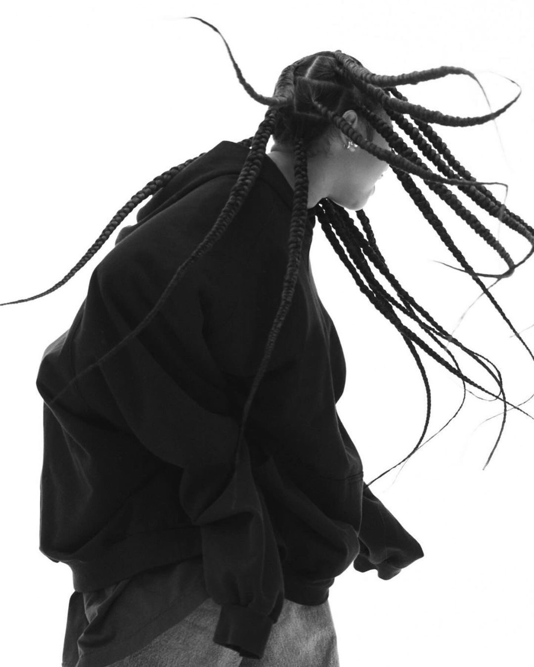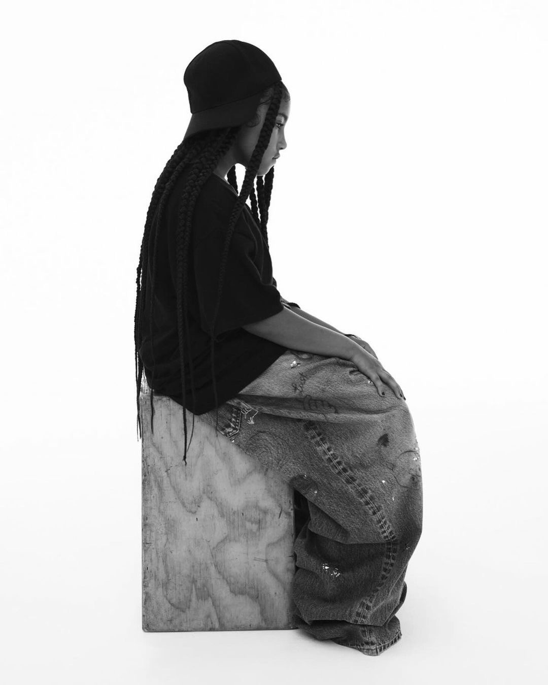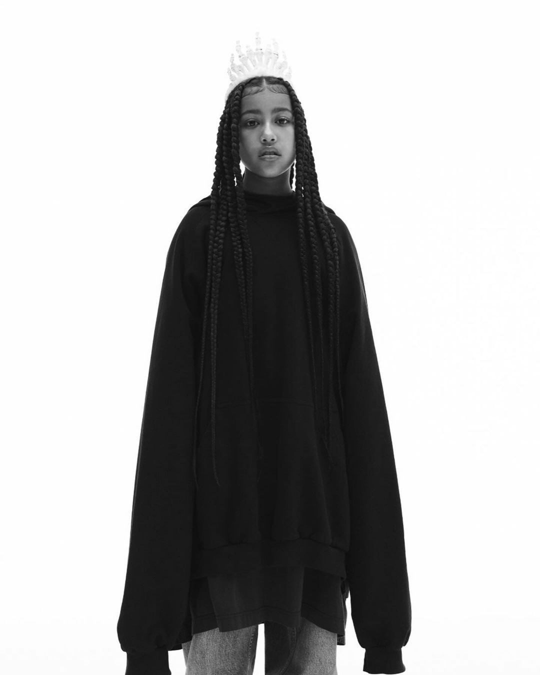 Dressed in a black hoodie, layered over a black crew neck with grey oversized jeans that had drawings and painting splattered everywhere, North looked in her element while posing in a series of portrait images.