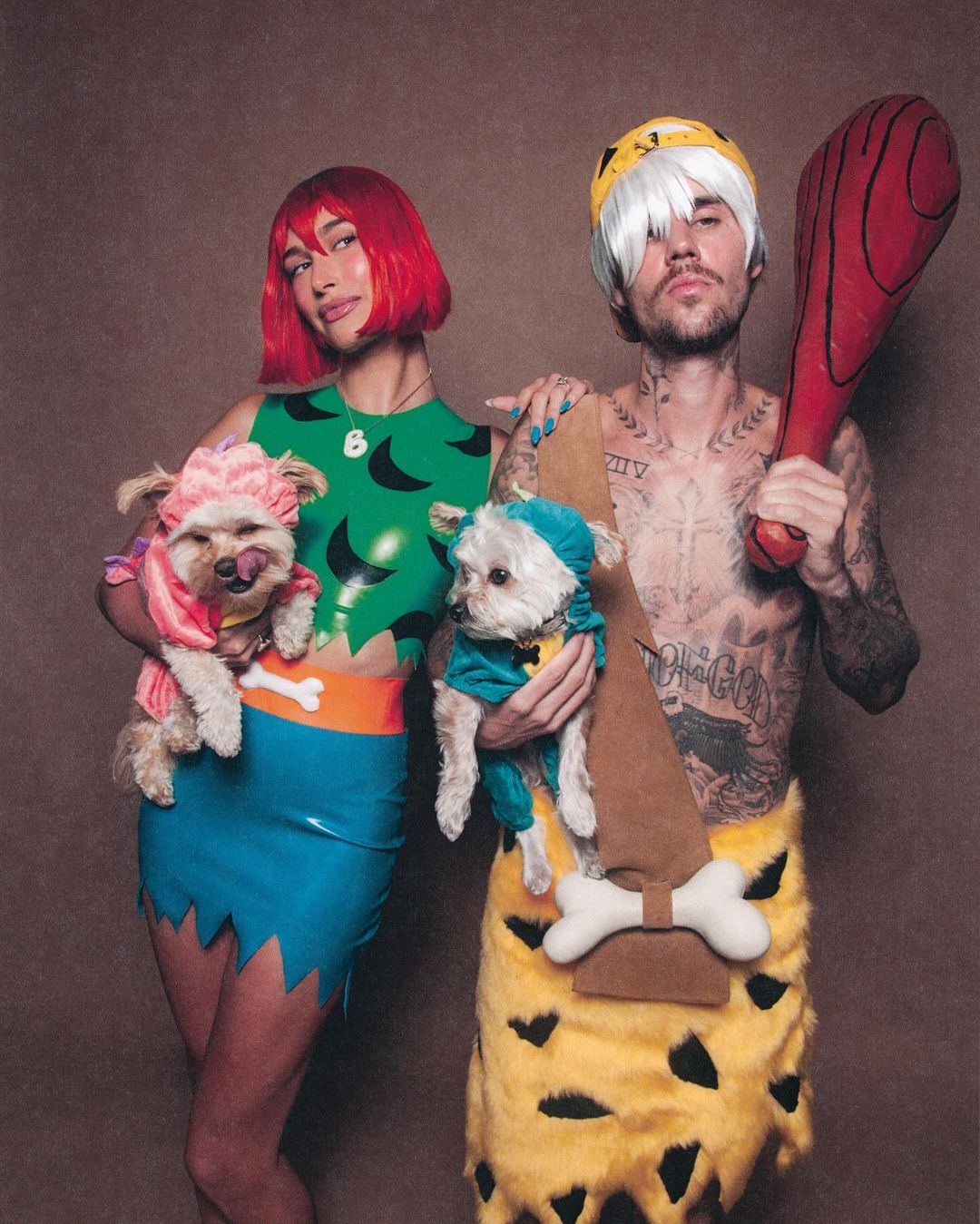 Hailey and Justin Bieber as Peebles and Bam Bam