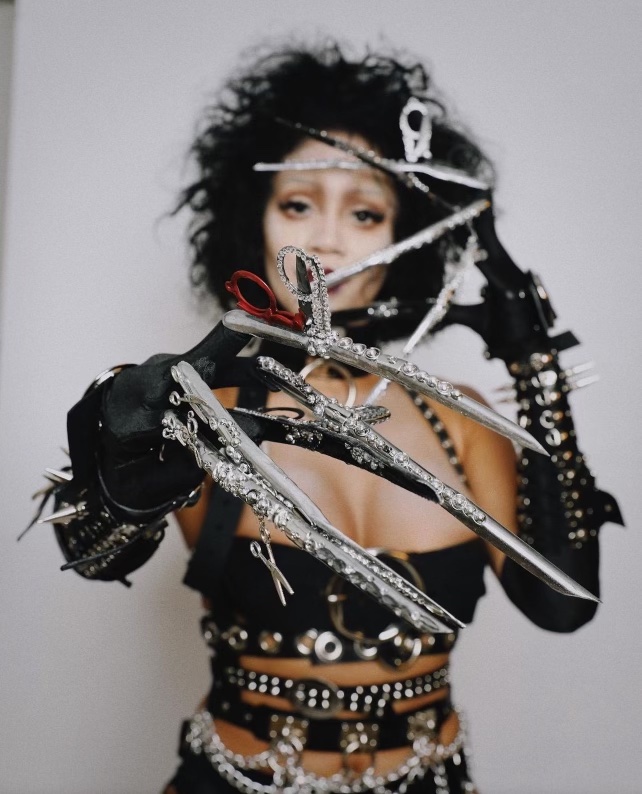 It’s no surprise that the “Icy Girl” Saweetie chose “Edward Scissorhands,” as her costume choice based on her admiration for long and extravagant nail art, which felt on brand. As we know her for having exceptionally long claws, this look for Halloween was nothing new to her.