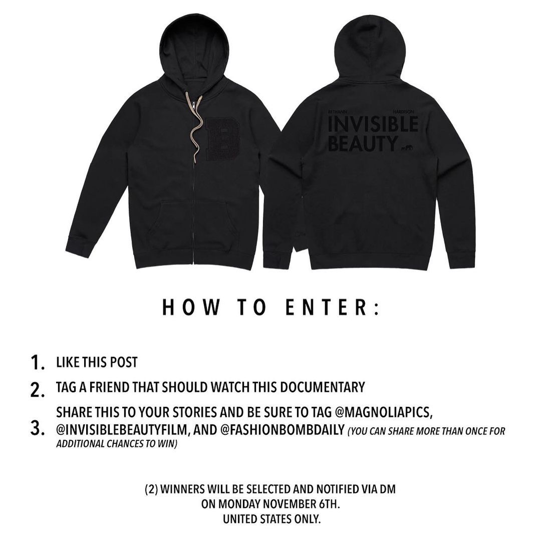 You have until Monday, Nov. 6th to enter for a chance to win this exclusive hoodie, and all you need to do is “Like the Post” below, “Tag a Friend” that should watch the documentary, and “Share to your story” and tag, @Magnoliapics, @InvisibleBeautyFilm, and @beautylifefun.