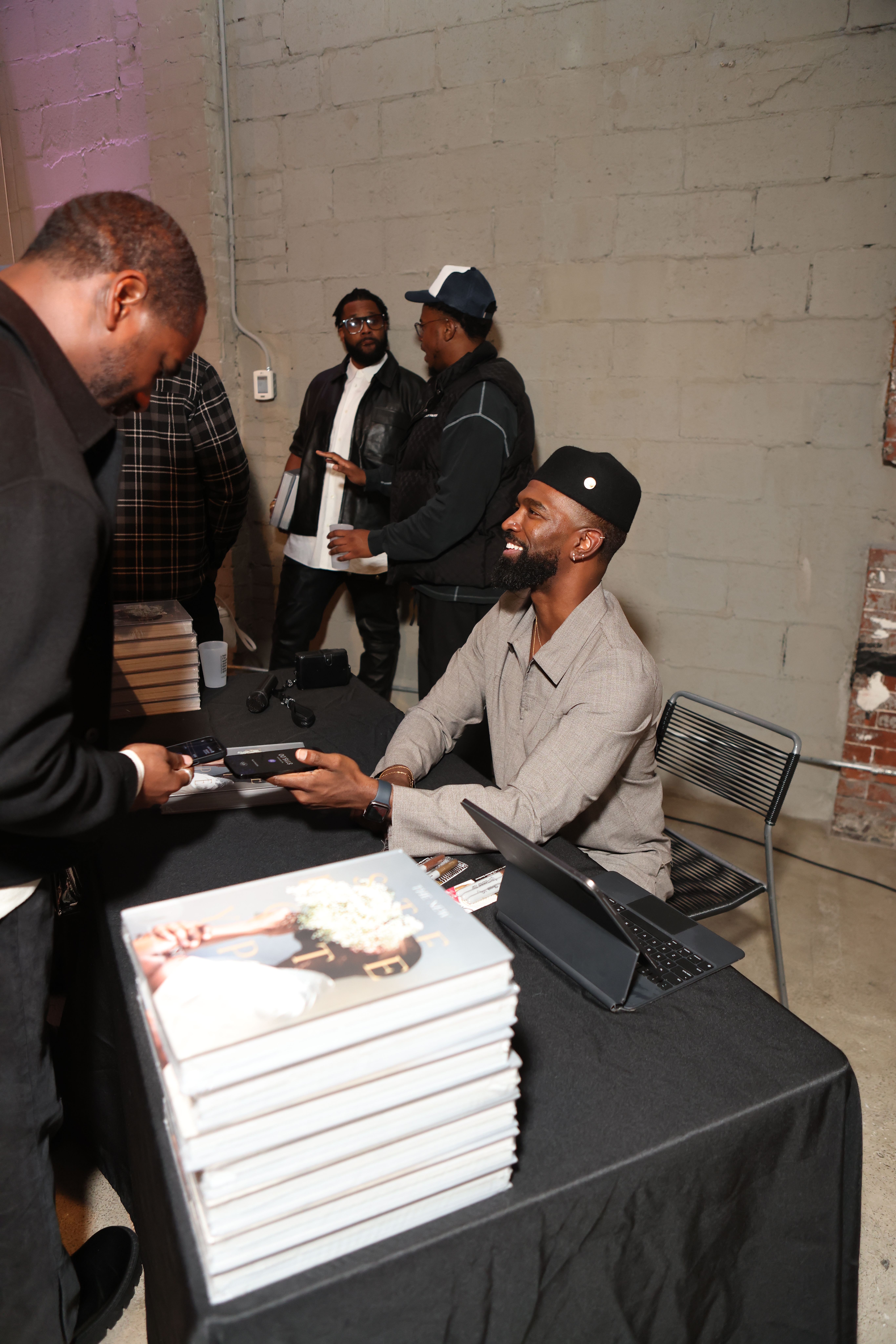 Attendees rushed in line to purchase their TNS: STORIES copy before they sold out from the Project Director, Marquelle Turner who embodied a king aura in a custom light brown two-piece set, with a black Kufi hat and black Balenciaga flats.