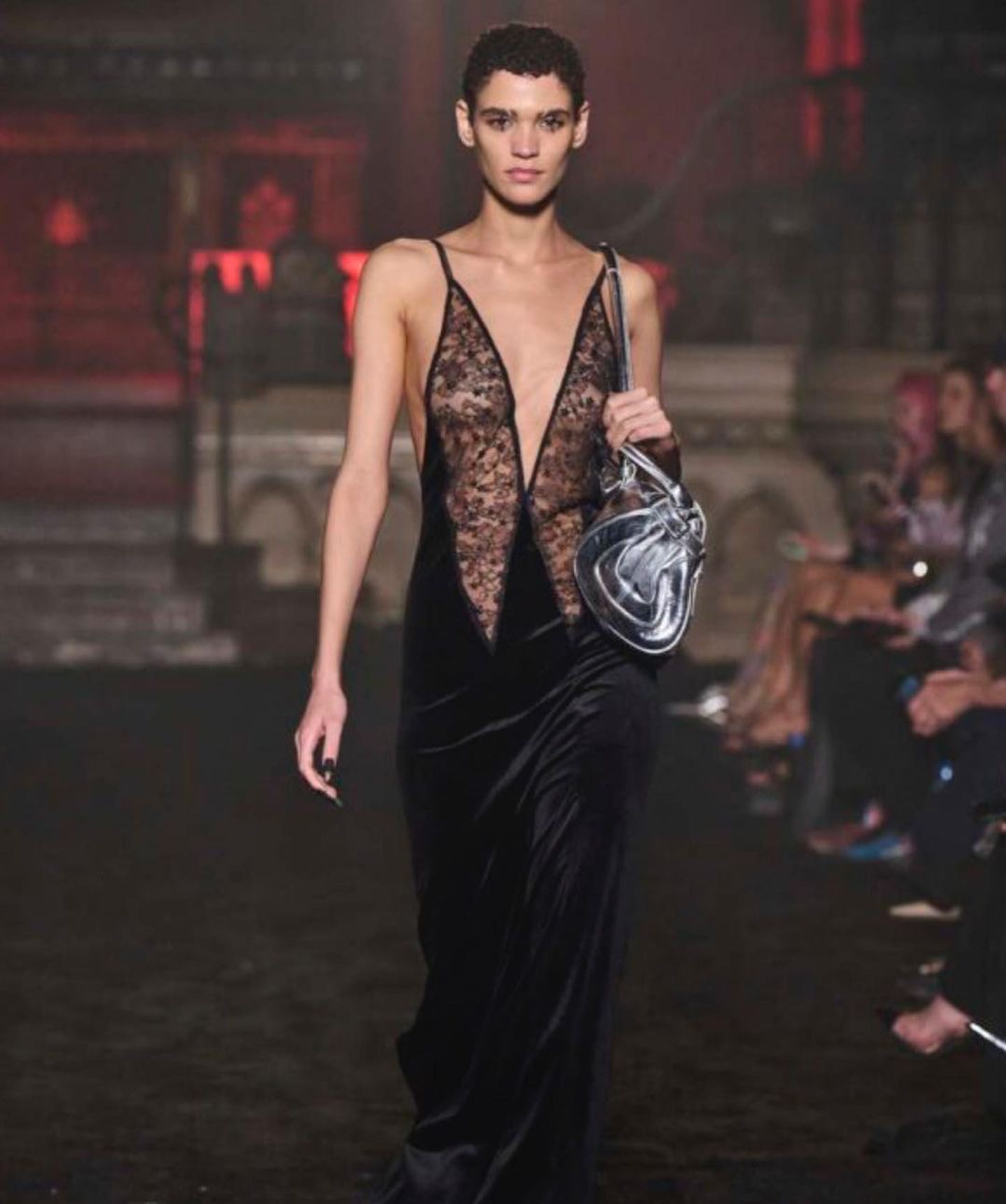 The “Kingdom Business” actress, 28, wore a black lace and velvet Christian Cowan dress that had a deep v-plunge line , and an elongated train. Her dress felt romantic and accentuated her hour-glass figure.