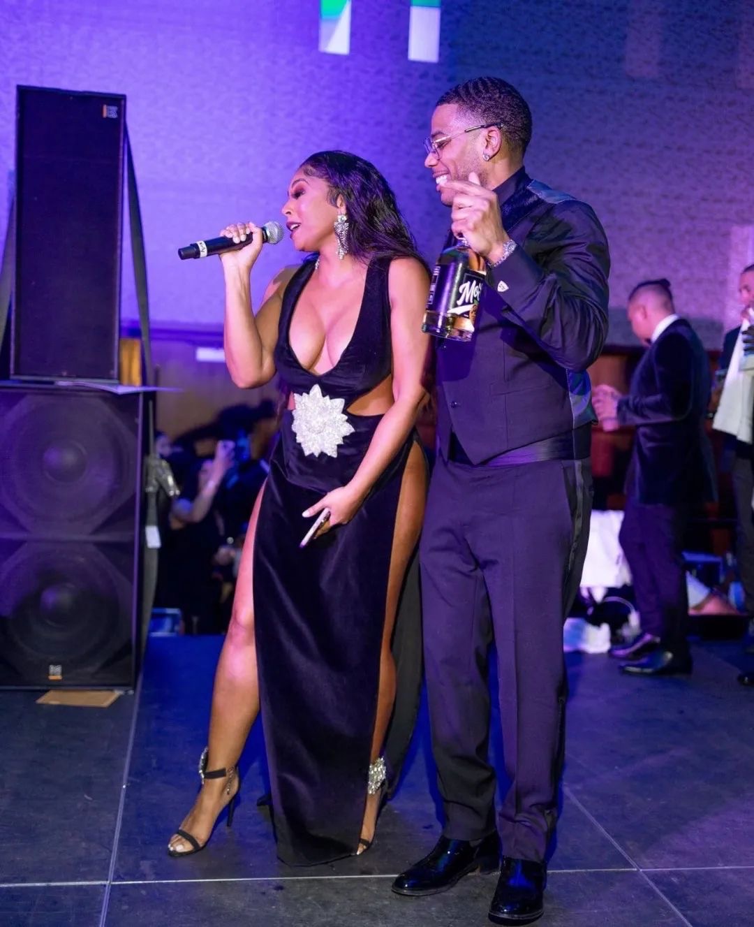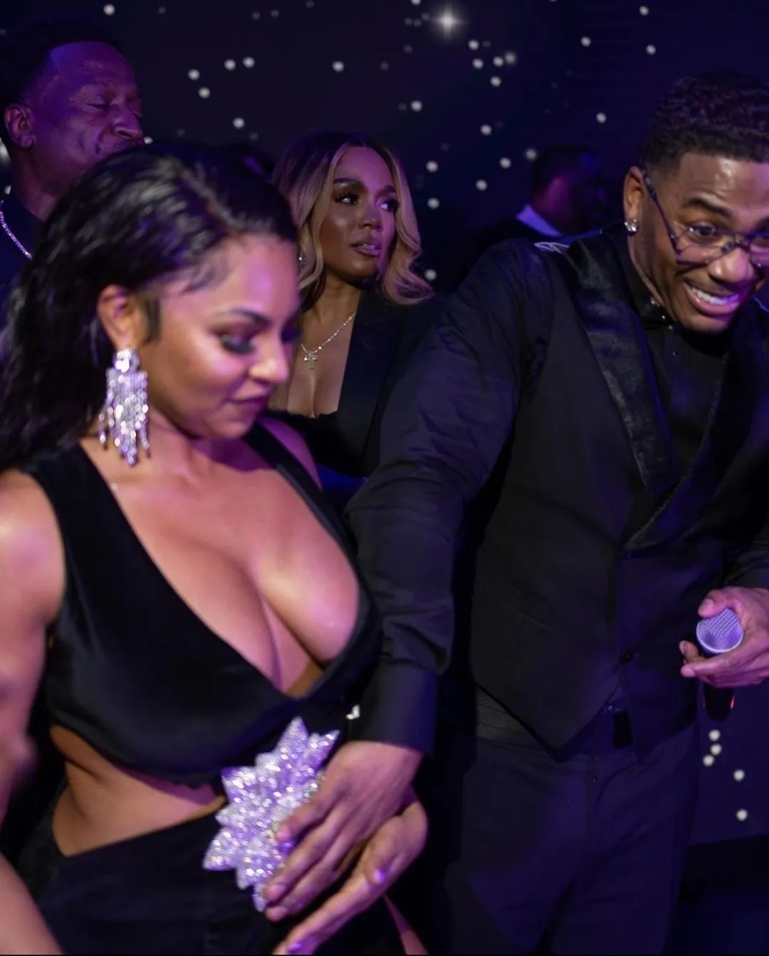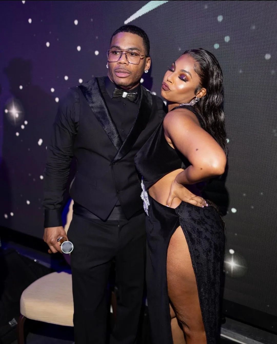 While attending Nelly’s 2023 Black & White Ball at the Four Seasons in St. Louis after a long hiatus, the duo both showed up in all black, matching each others fly. In excitement, Nelly couldn’t keep his paws off Ashanti’s belly.