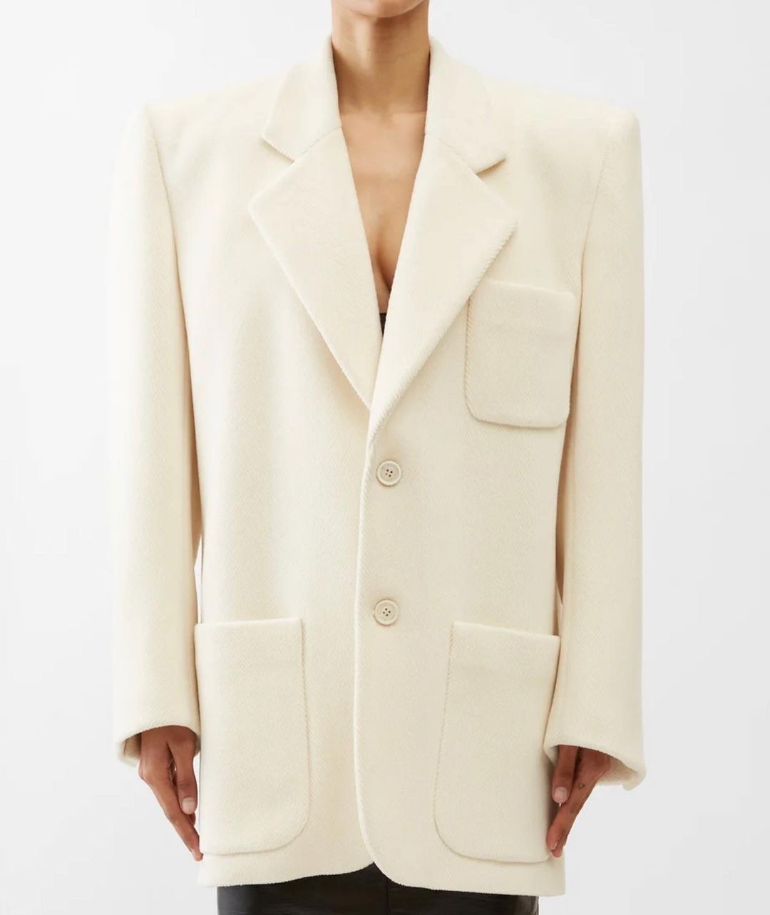 Rocking a $4,500 cream off white Fall ’23 YSL blazer, Rihanna took us back to the 80’s with an oversized silhouette. Made from wool with silk lining, her blazer was perhaps the perfect transitional piece to take from day to night during the winter season.