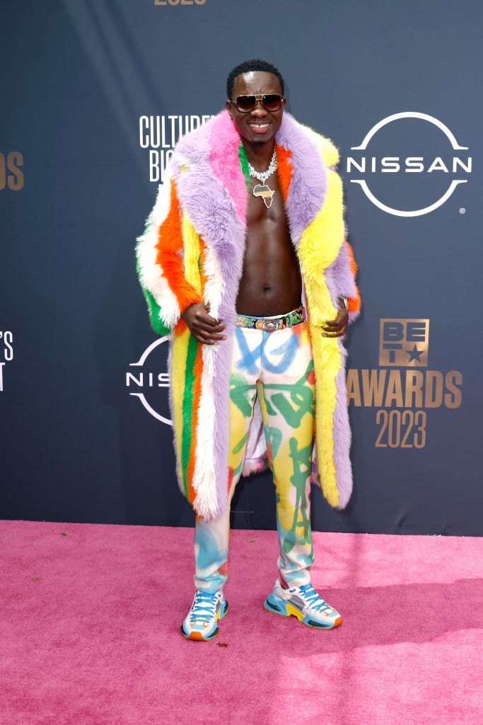 Michael Blackson’s vivacious sense of style is enough to make you smile before he utters a single word. Whether he’s wearing logomania athleisure with a colorful fur bomber or going for a bold monochromatic moment in a crimson hue, Blackson’s style is as lively as his performances.