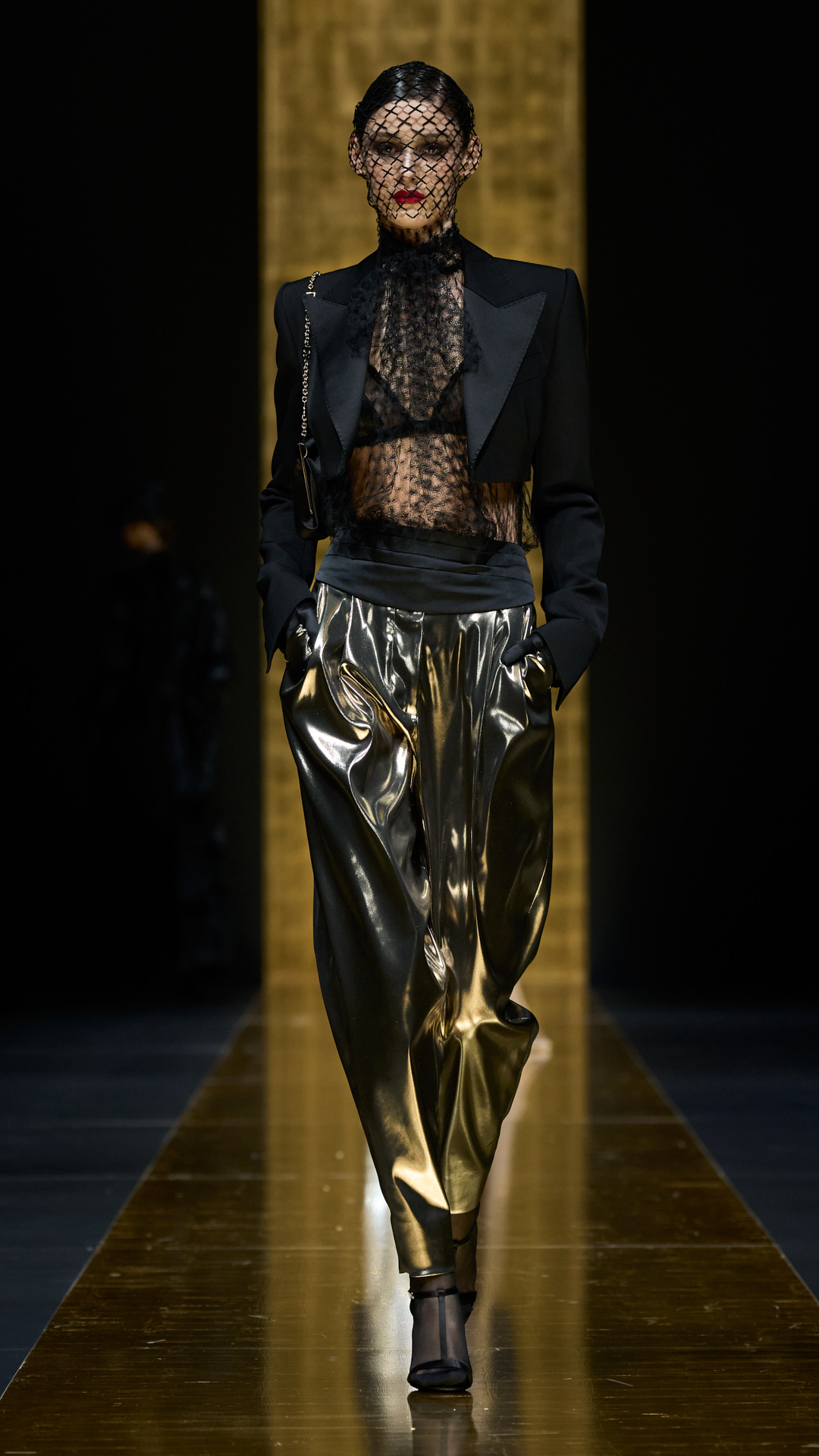 As models sashayed down the runway with fishnet face masks and tilted hats, we saw a new take on the traditional formal tuxedo. Dolce & Gabbana reinvented the masculine silhouette in such a way that it catered to the women’s physique.