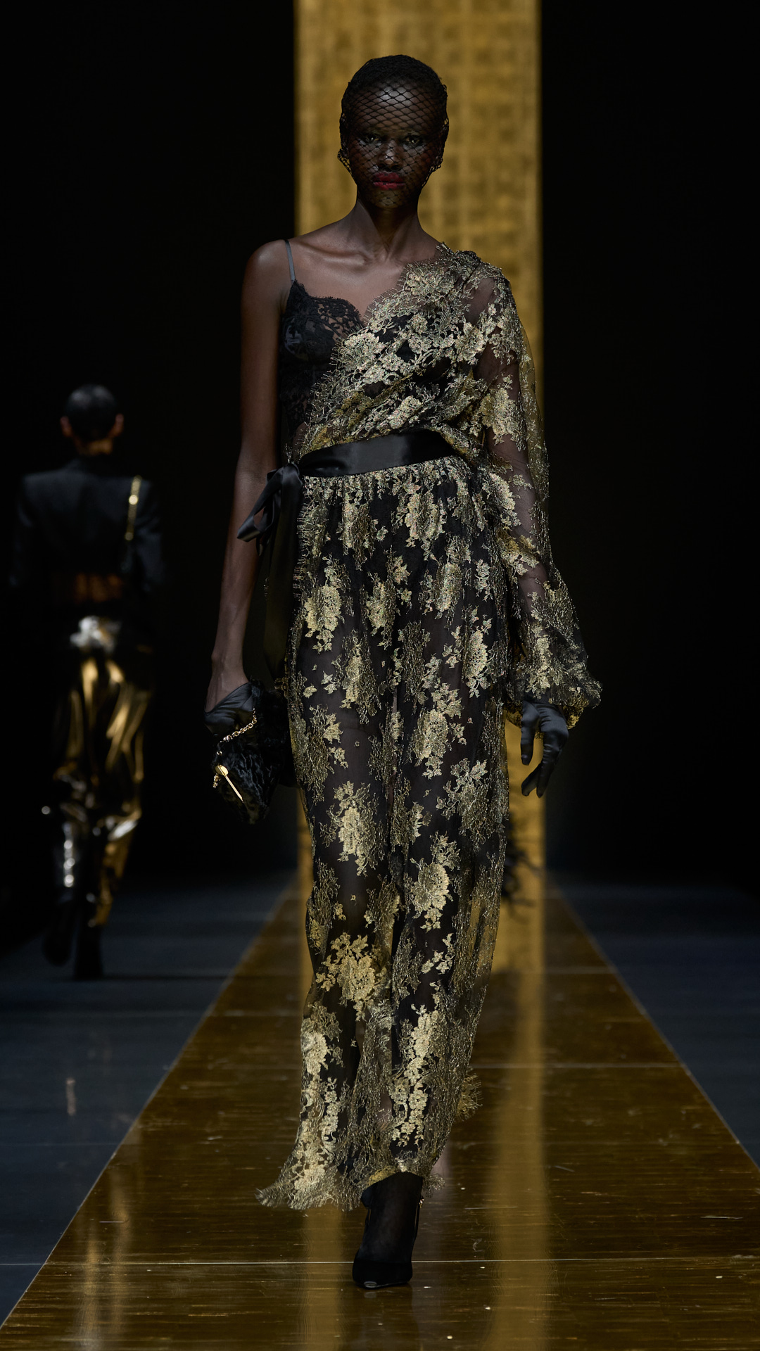 A black and gold runway set the stage for Dolce & Gabbana’s latest Fall Winter 24/25 collection and this was by far one of the most lavish and opulent shows during Milan Fashion Week.