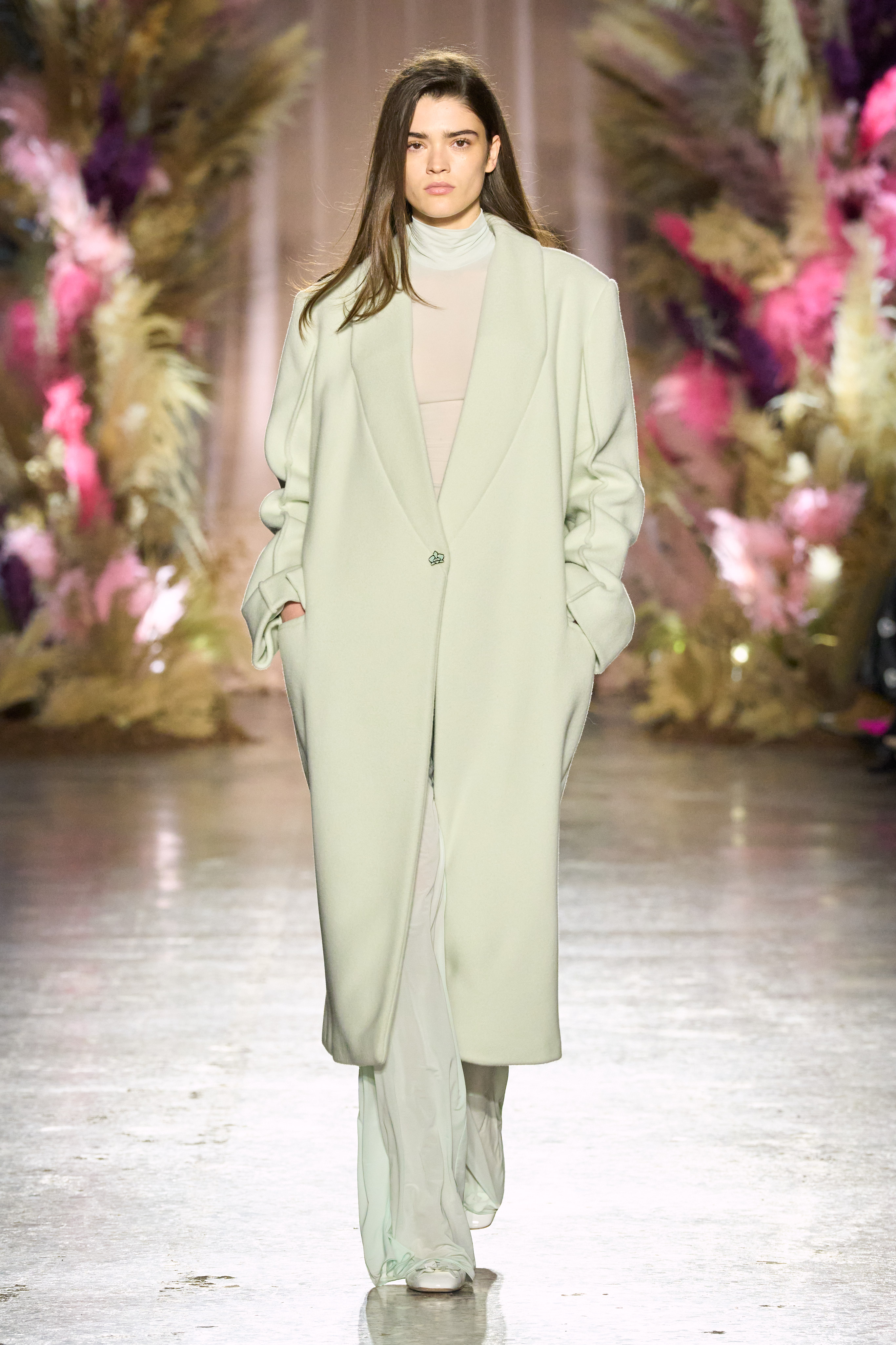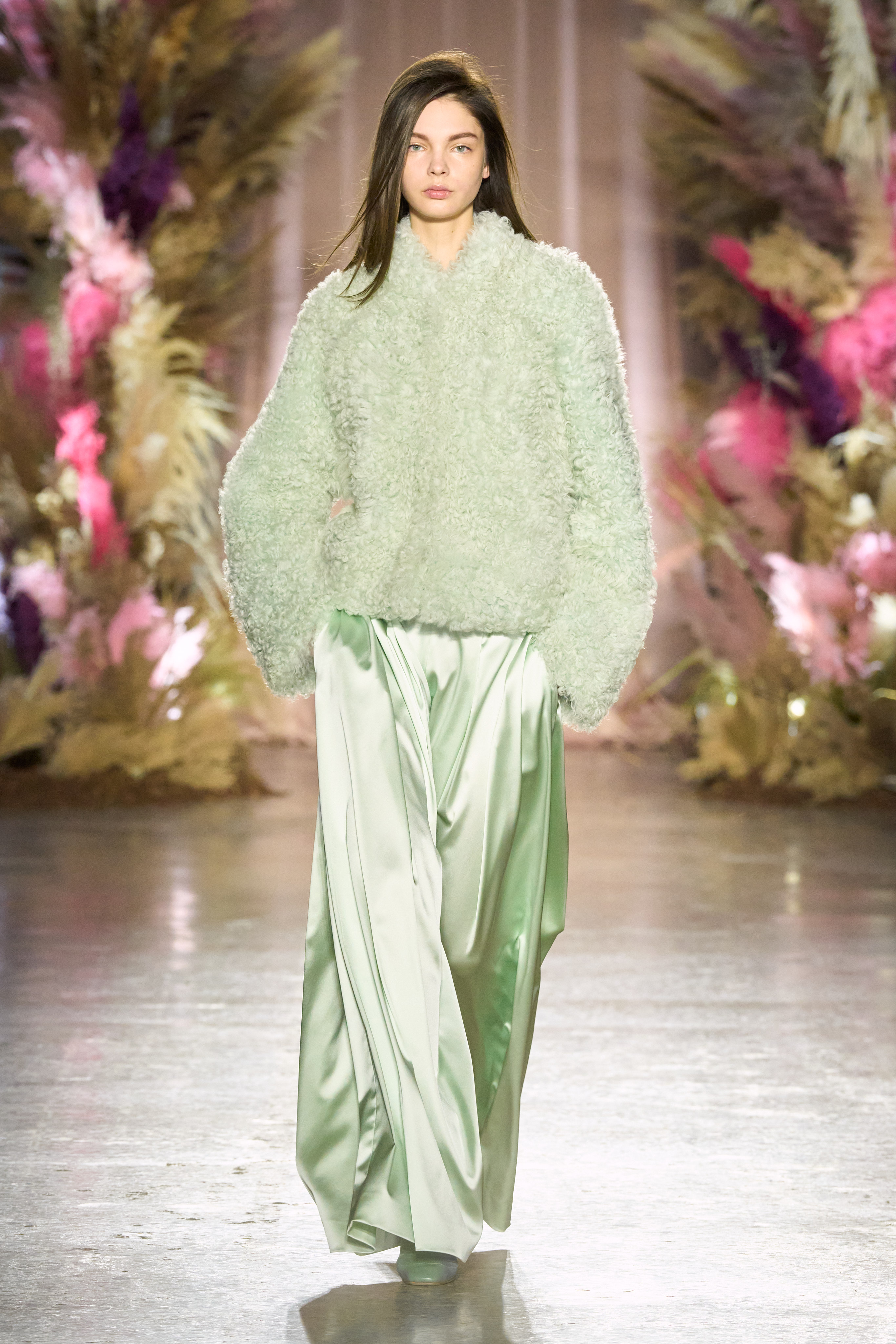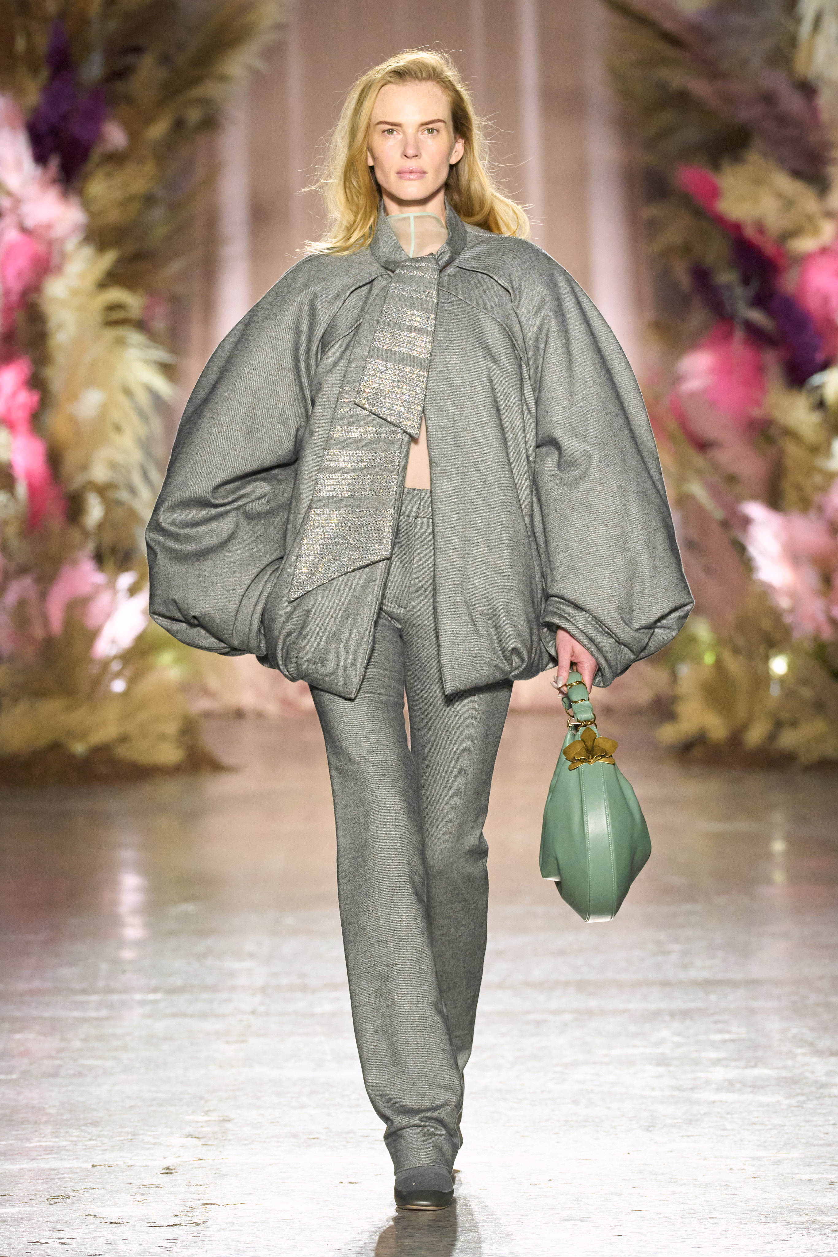 Not only did we see the progression of color and fabrics like their woven wool which gave a “fur effect,” but we also saw Genny tapping into evening wear for Fall Winter 24/25.