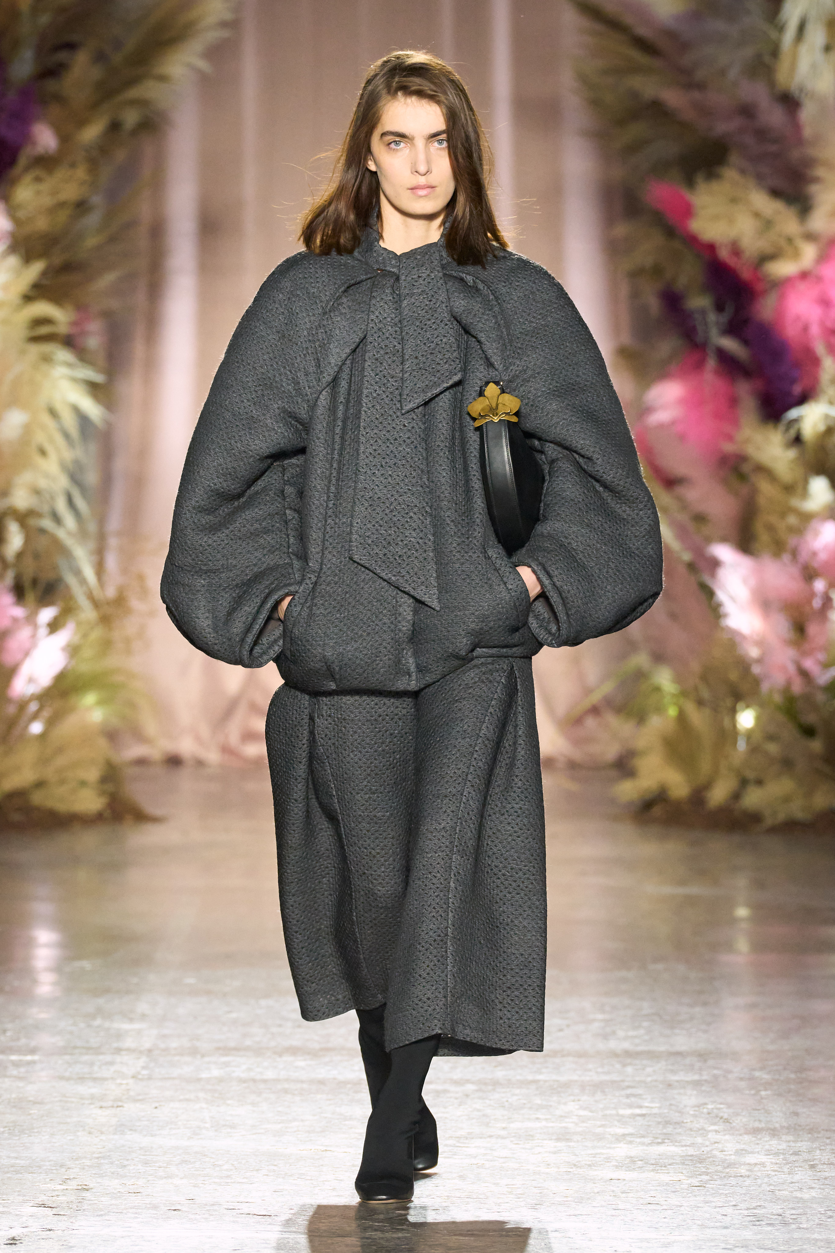 We loved the variation that we saw throughout the RTW line, catering to different style preferences. For the chicest fall attire, Genny showcased the most stunning heather grey cocoon coats that were characterized with wide sleeves and superb craftsmanship.
