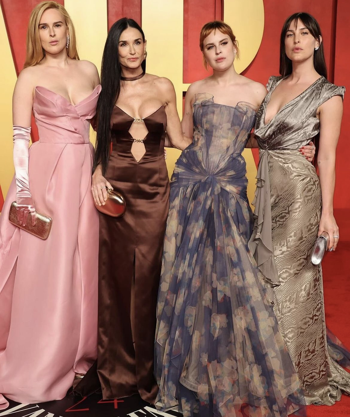 Demi Moore in Versace, Rumer Willis in Monique Lhuillier, Tallulah Willis in Versace, Scout Willis in Zac Posen