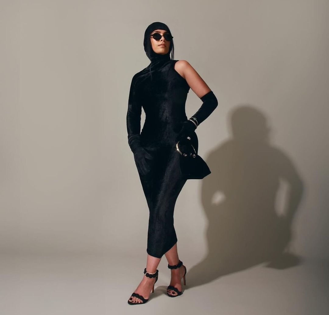 When it came down to her accessories, she wore black circular frames, and had diamonds bracelets on her wrist, along with a wedding ring that was iced out. Her black open toe heels added cohesion to her all black monochromatic ensemble.