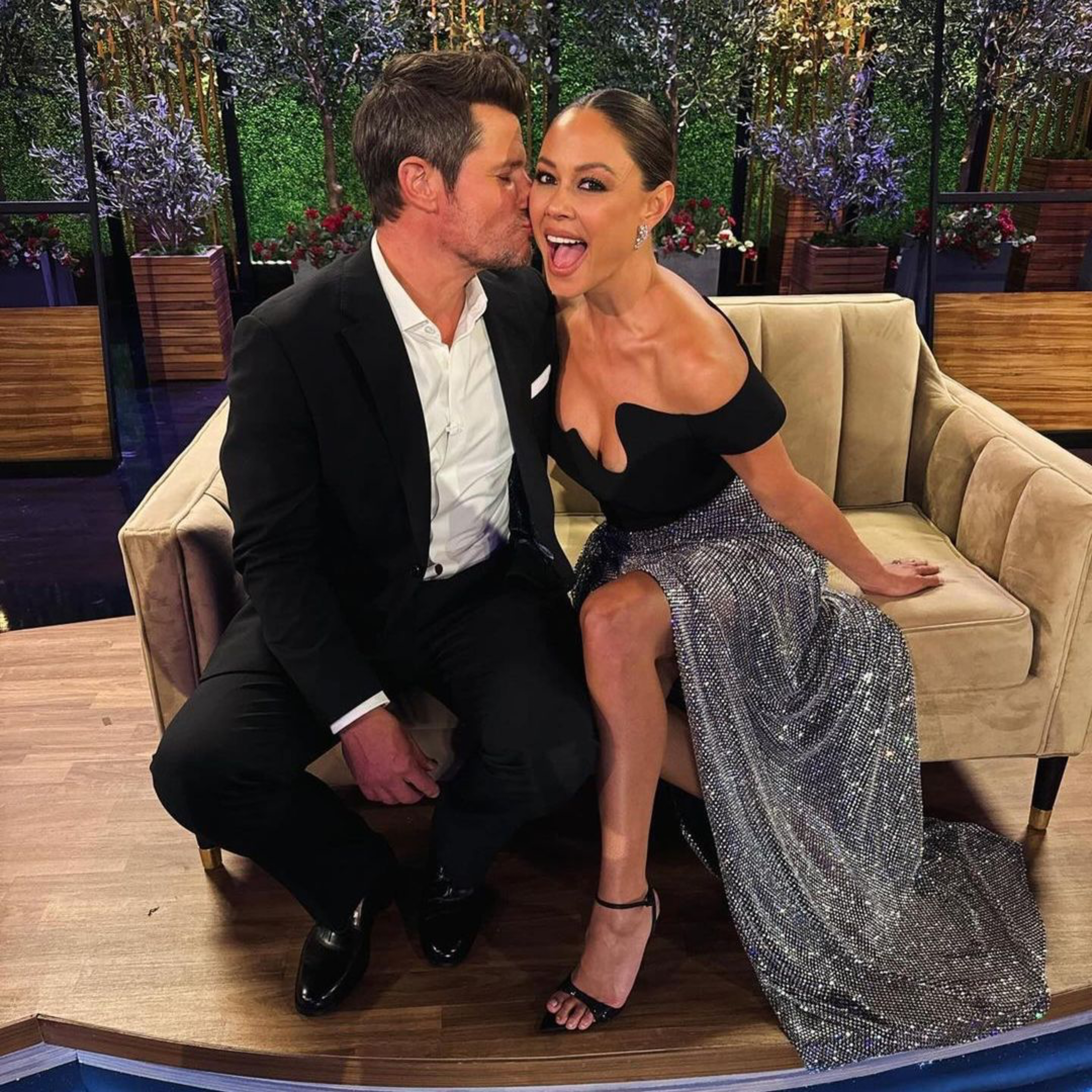 Nick Lachey and Vanessa Lachey hosted the reunion, with Vanessa in a dress by Nedo aka Nedretta Ciroglu, styled by Sonja M Christensen.