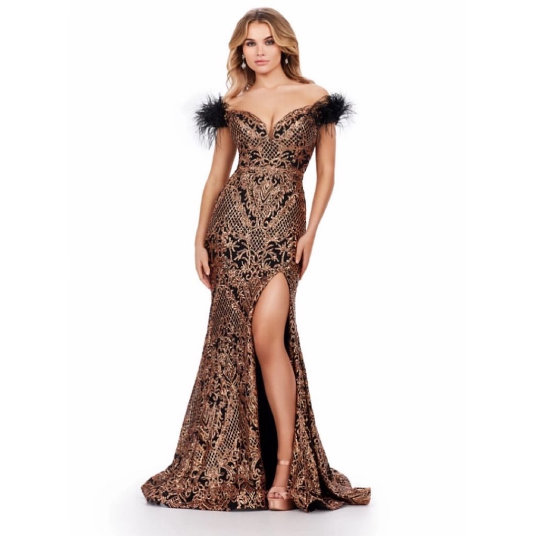 Chelsea was a vision in a $798 Ashley Lauren Long Prom Sequin Mermaid Prom Dress Feather off the shoulder Slit Gown: