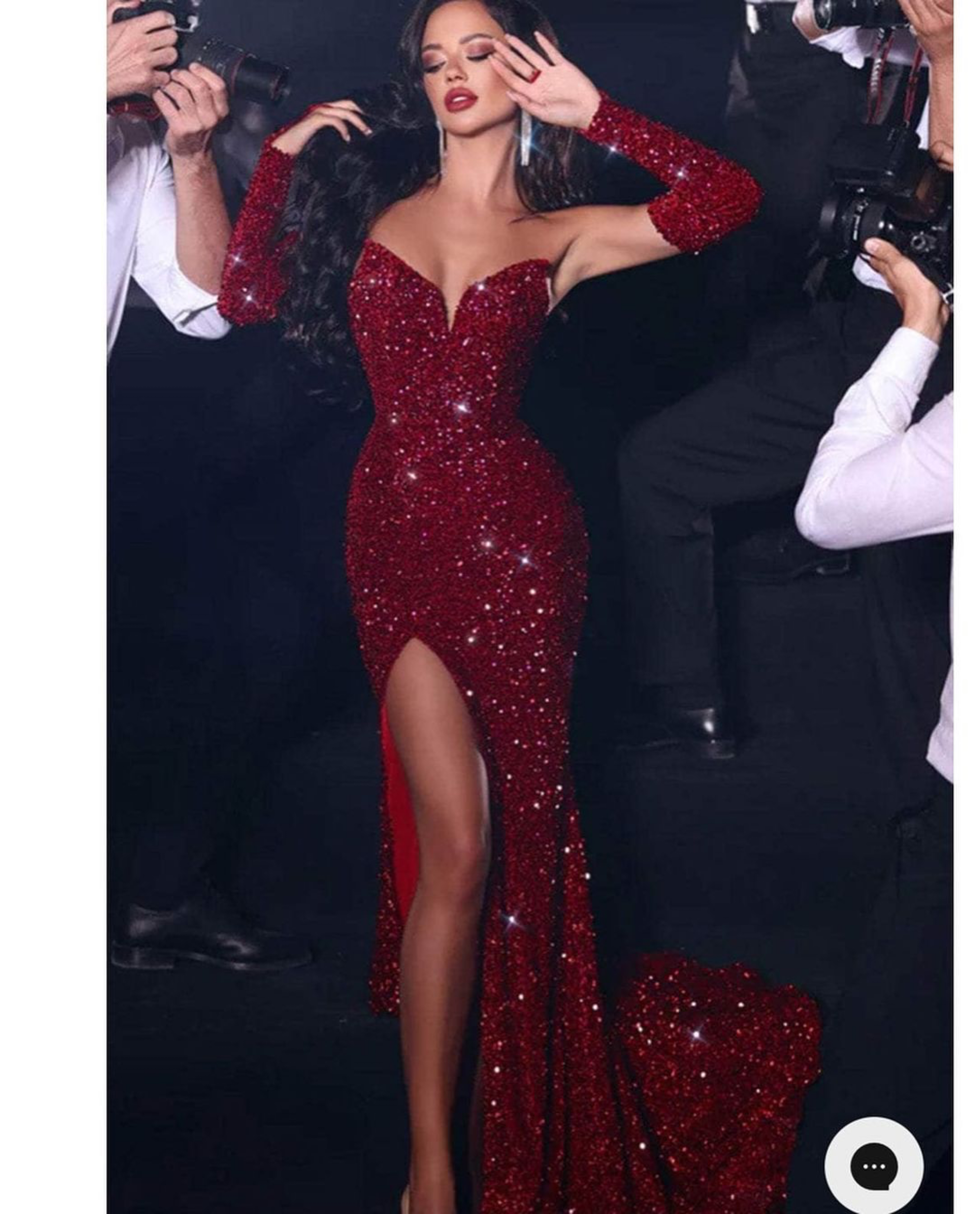 Amy Tiffany was the lady in red in a $439 Portia and Scarlett Sequined Mermain Prom Dress with a slit: