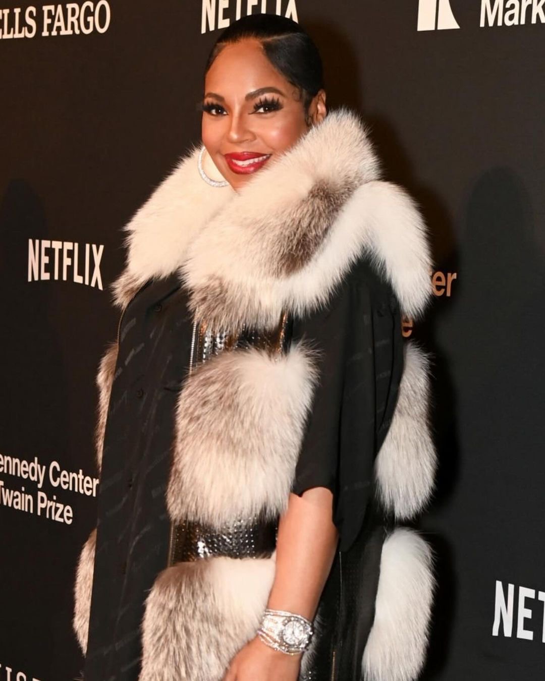 Nonetheless, they look stronger than ever, and happily in love. For the event, Ashanti opted for a black $1,590 silk Balenciaga shirt that she wore as a dress. She layered her look with a long black and white mink coat from Daniel’s Leather, and accessorized with black snake skin boots. Her neck was iced out with Chanel, and we noticed a massive rock on her ring finger.