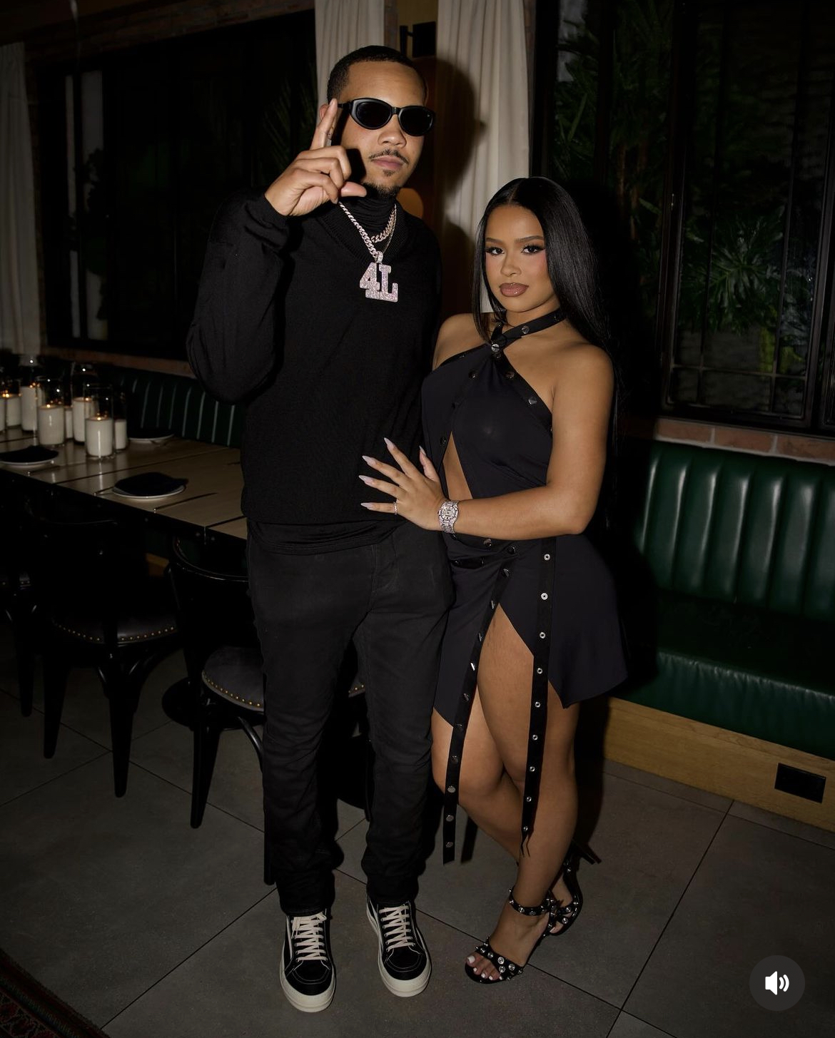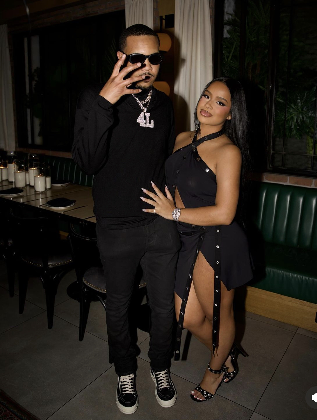 Matching her fly in all black, G-Herbo opted for a black turtleneck, with denim skinny jeans and Vans sneakers. Most noticeably were his iced-out chains that would make anyone say Cha-ching!