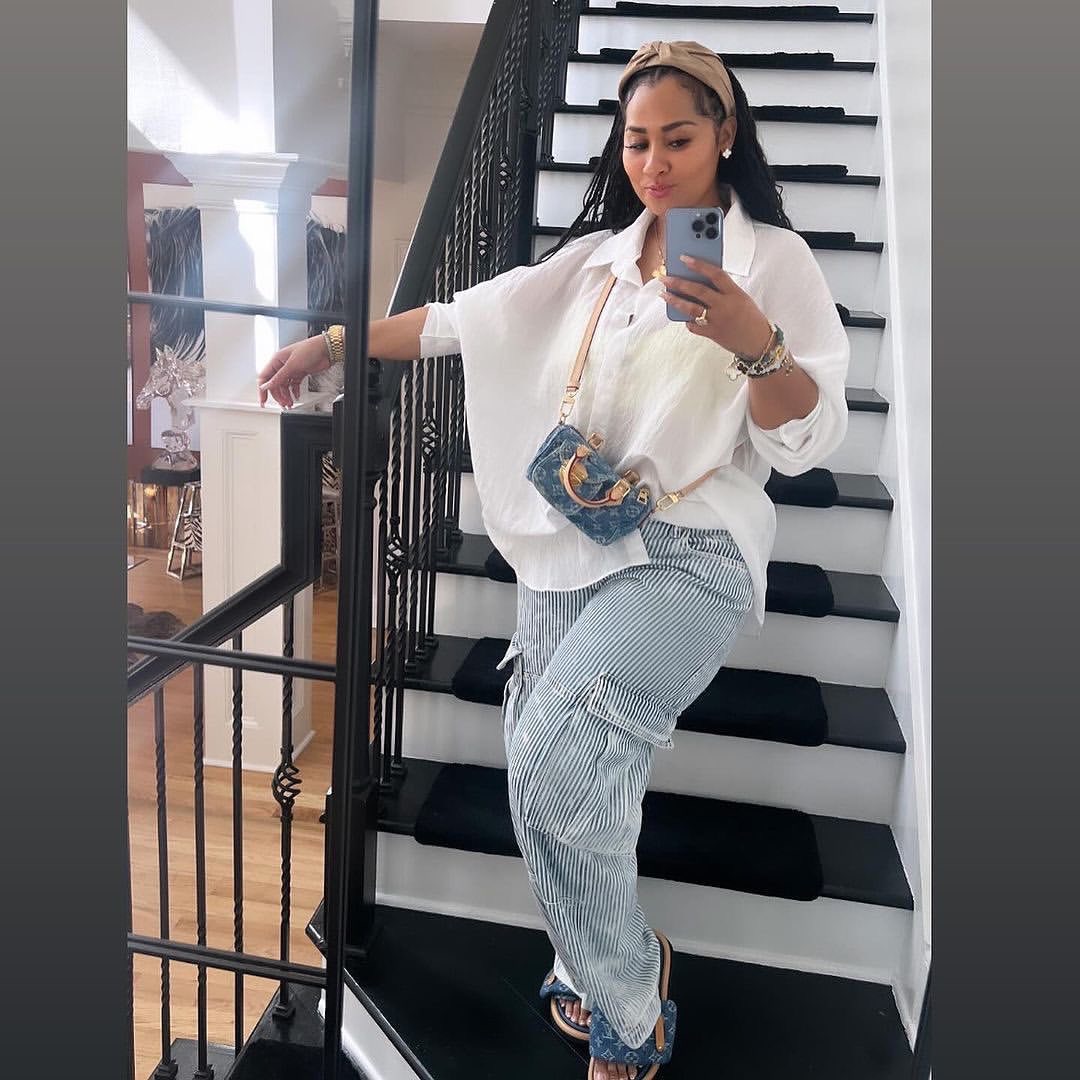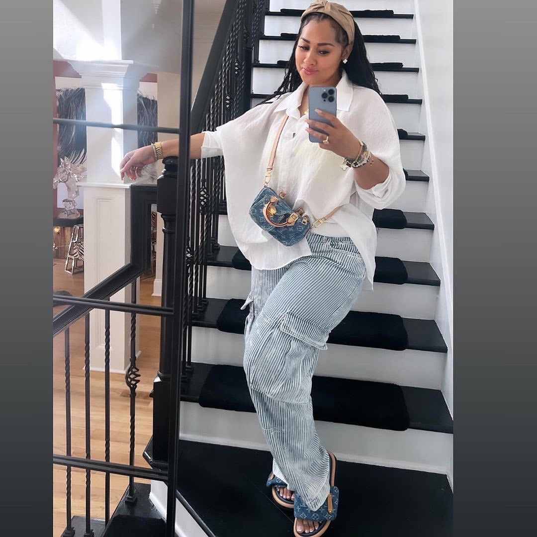 Tammy Rivera mixed high and low for Easter, wearing Louis Vuitton Bomb Accessories and $32 Utility Jeans from Target: