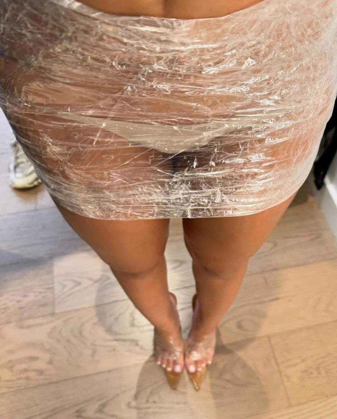 Instagram user @sparksnstyle wrote, “even though I think Balenciaga was the first to pull this off, this is lovely marketing and by the comments, it’s working. You guys are talking either way, and I can’t wait to see the official campaign.” While another user, @syd_ran expressed, “Saran wrap is crazy… she had to be hot. Let’s not make this trend.”