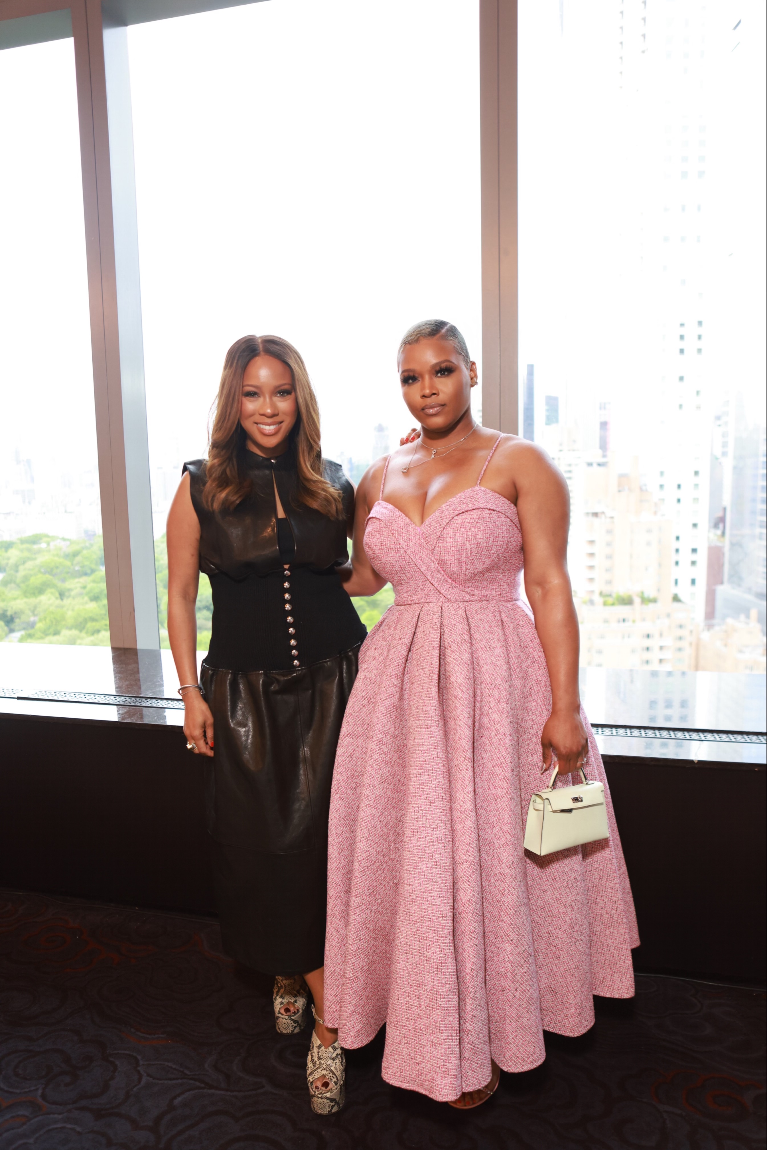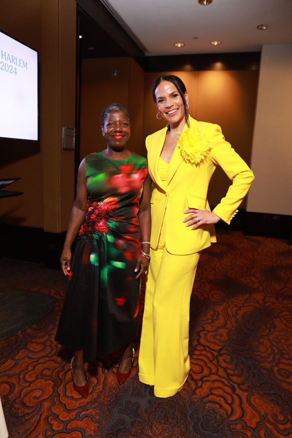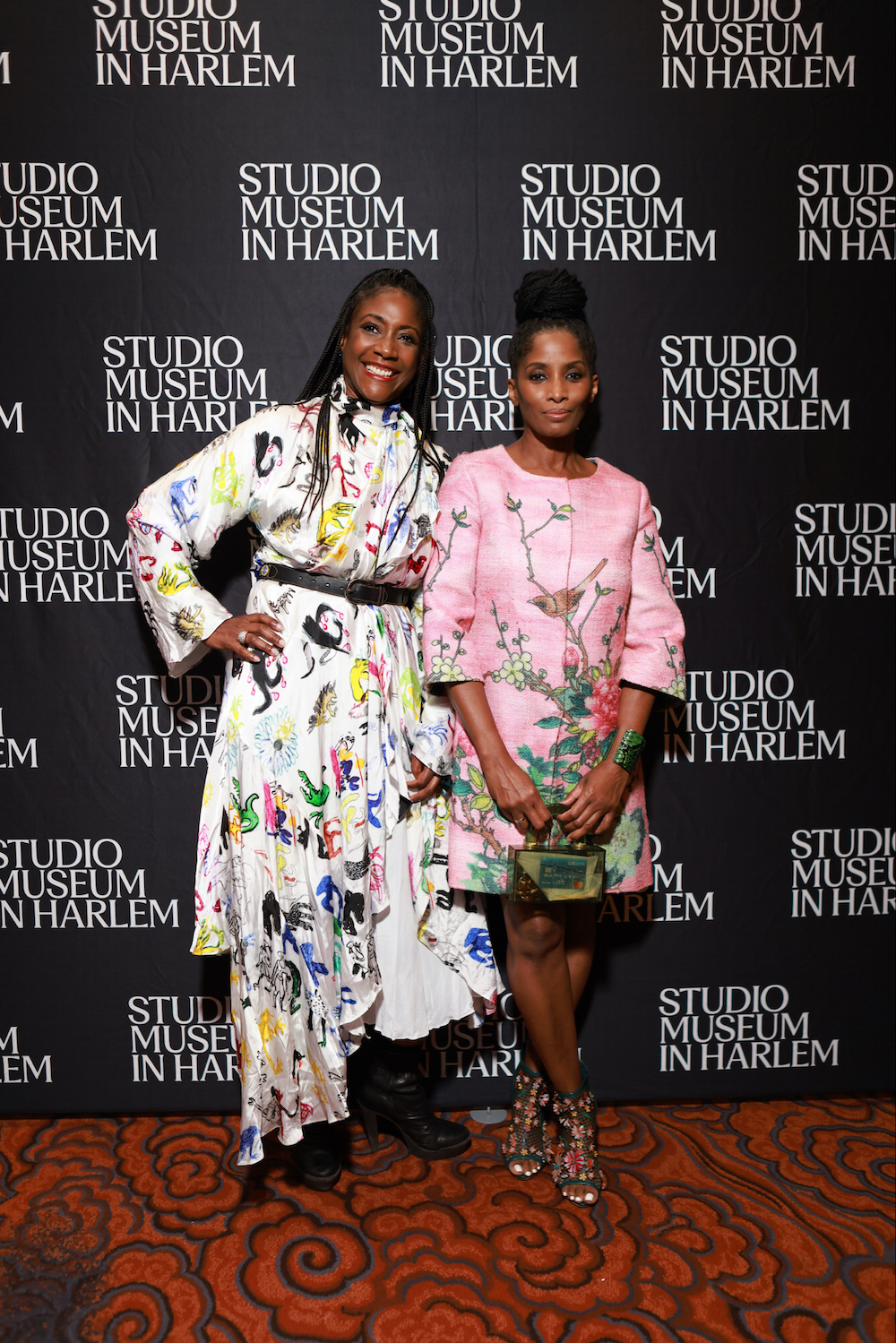 Crystal McCrary posed with Thelma Golden, Director and Chief Curator of the Studio Museum in Harlem, with Crystal in Aisha McShaw and Thelma in Dries van Noten.