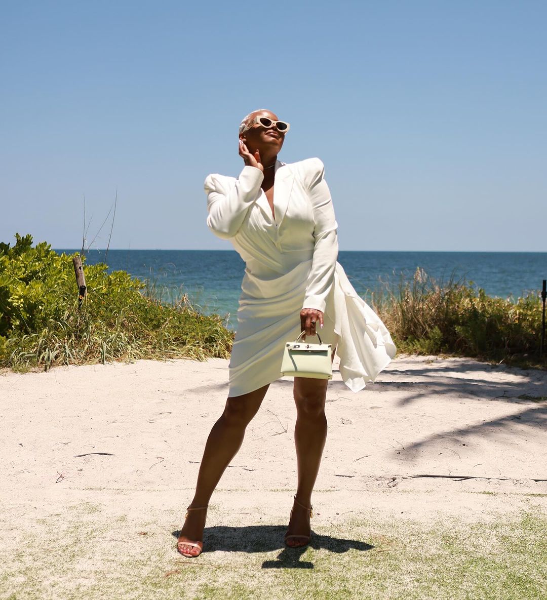 During the second day of the conference, Sulmers opted for a white ‘Akaira Blazer Dress’ from FashionNova that hugged her curves, and had draping throughout.