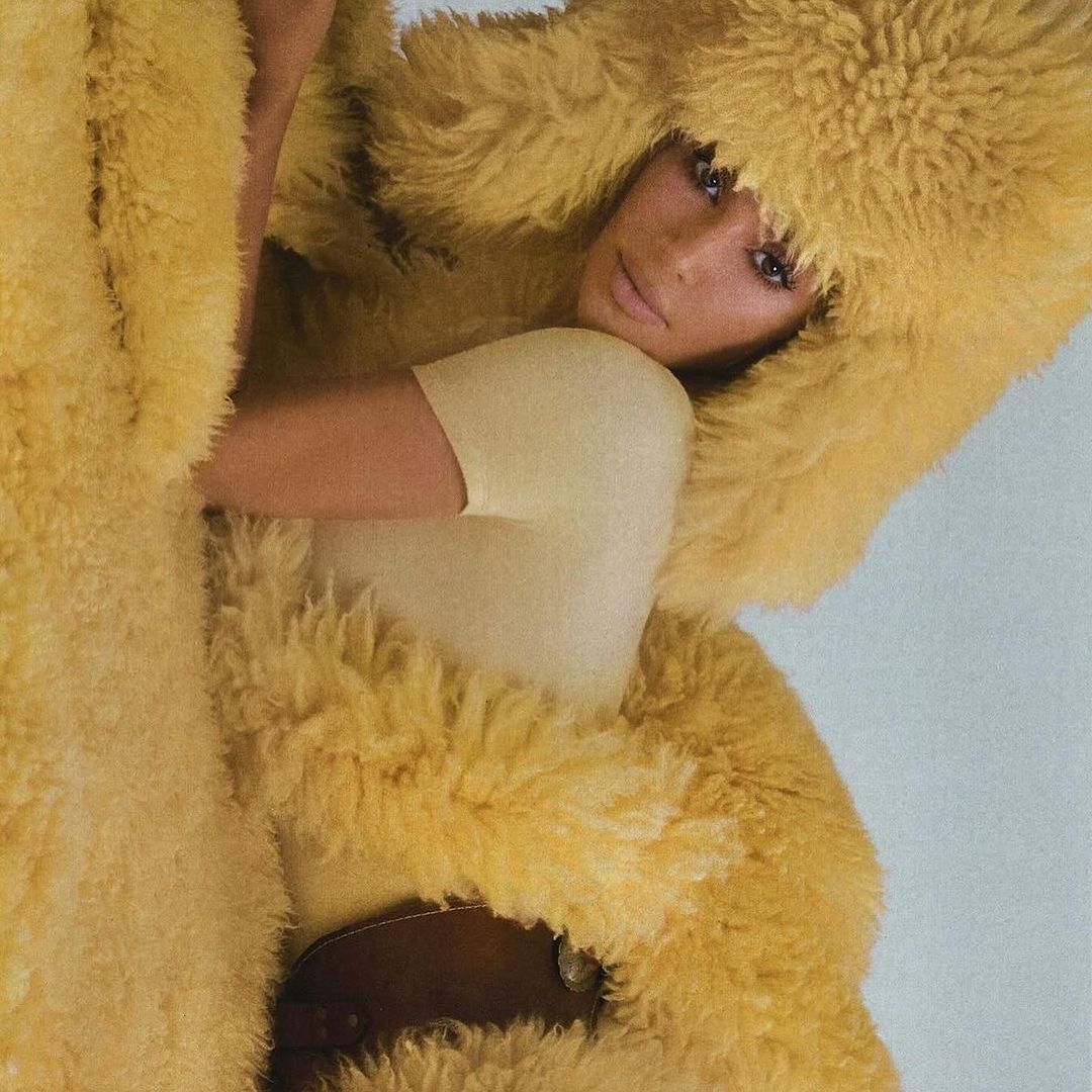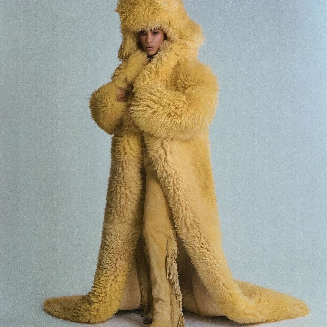 She also showed out and posed in a long yellow shearling coat which may have been exclusively custom made for the ‘Skim’ founder.