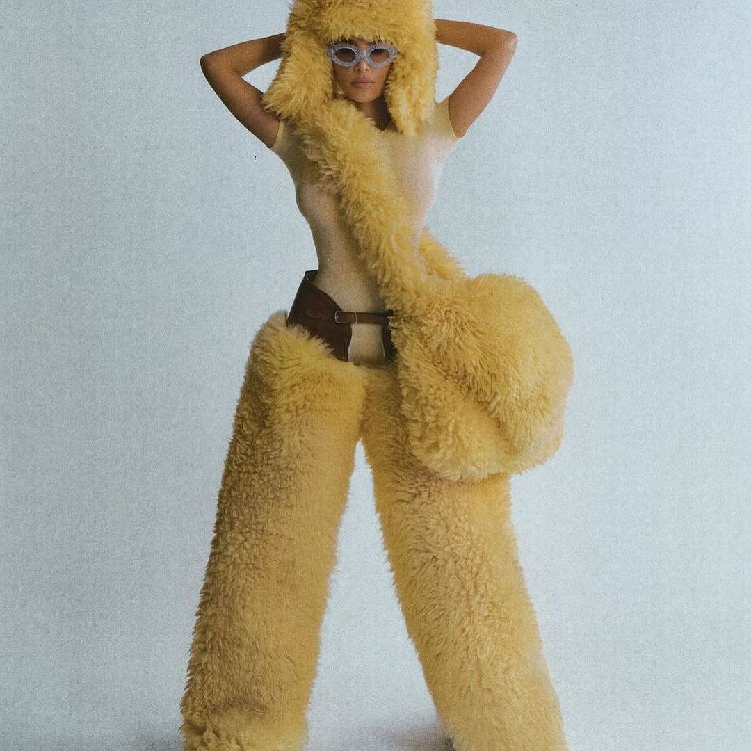 The designer Eli Russell Linnetz wanted to showcase his love for California in his FW24 collection entitled, “Made in California,” which features a variety of canary yellow shearling pieces worn by the mother and daughter duo.