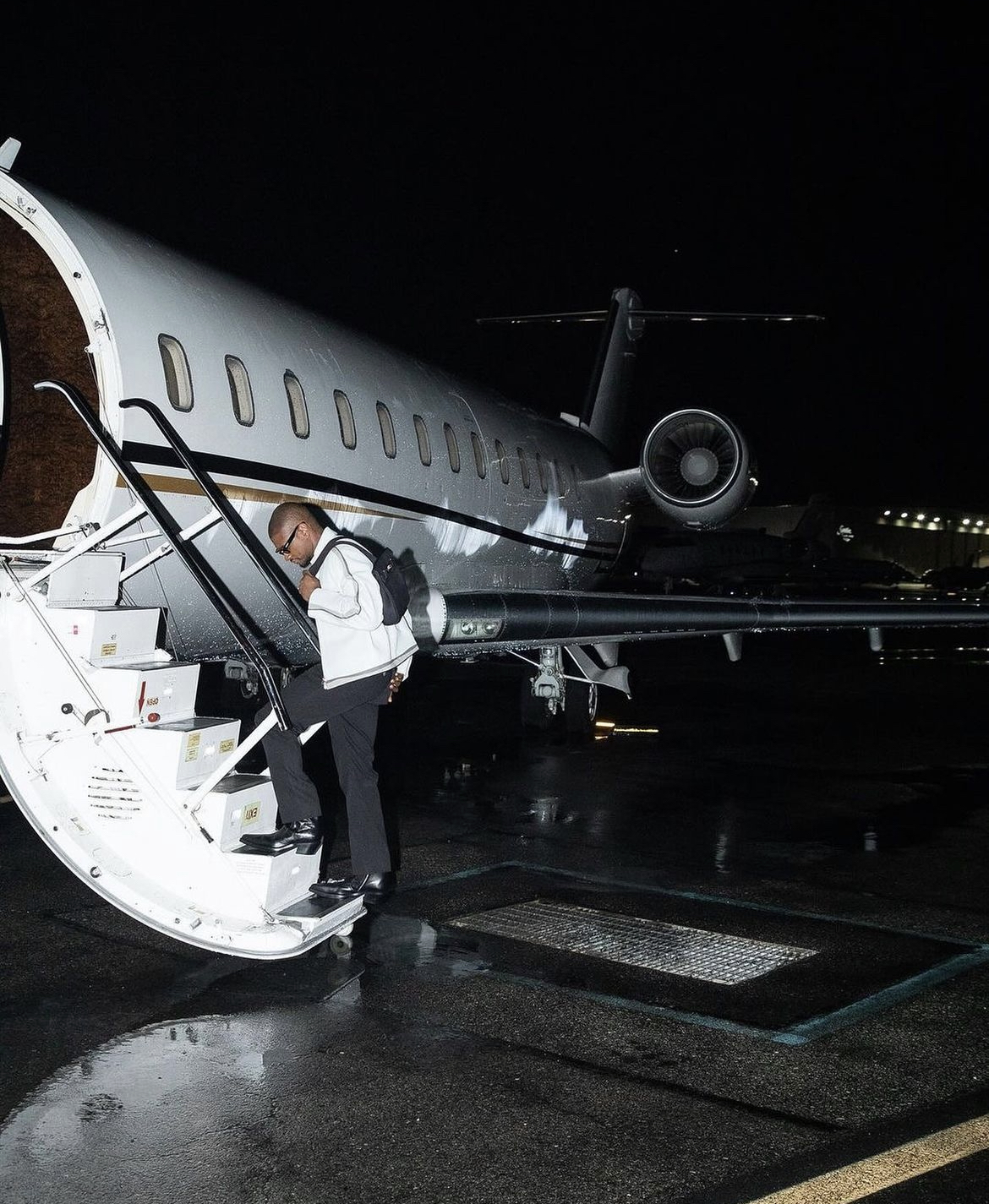 Following the Hermès runway show, Usher hopped on his private plane and jetted off to his next destination.
