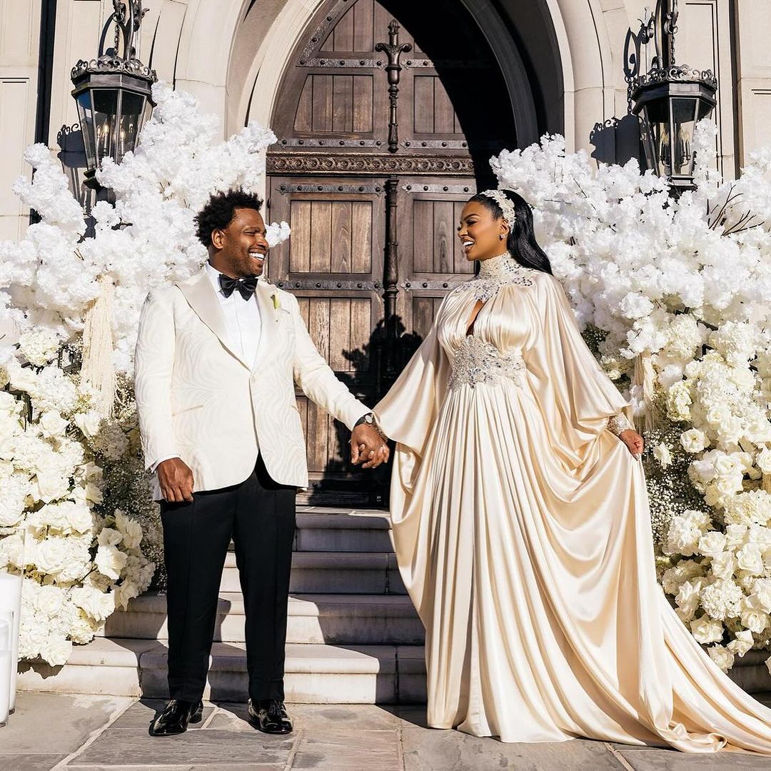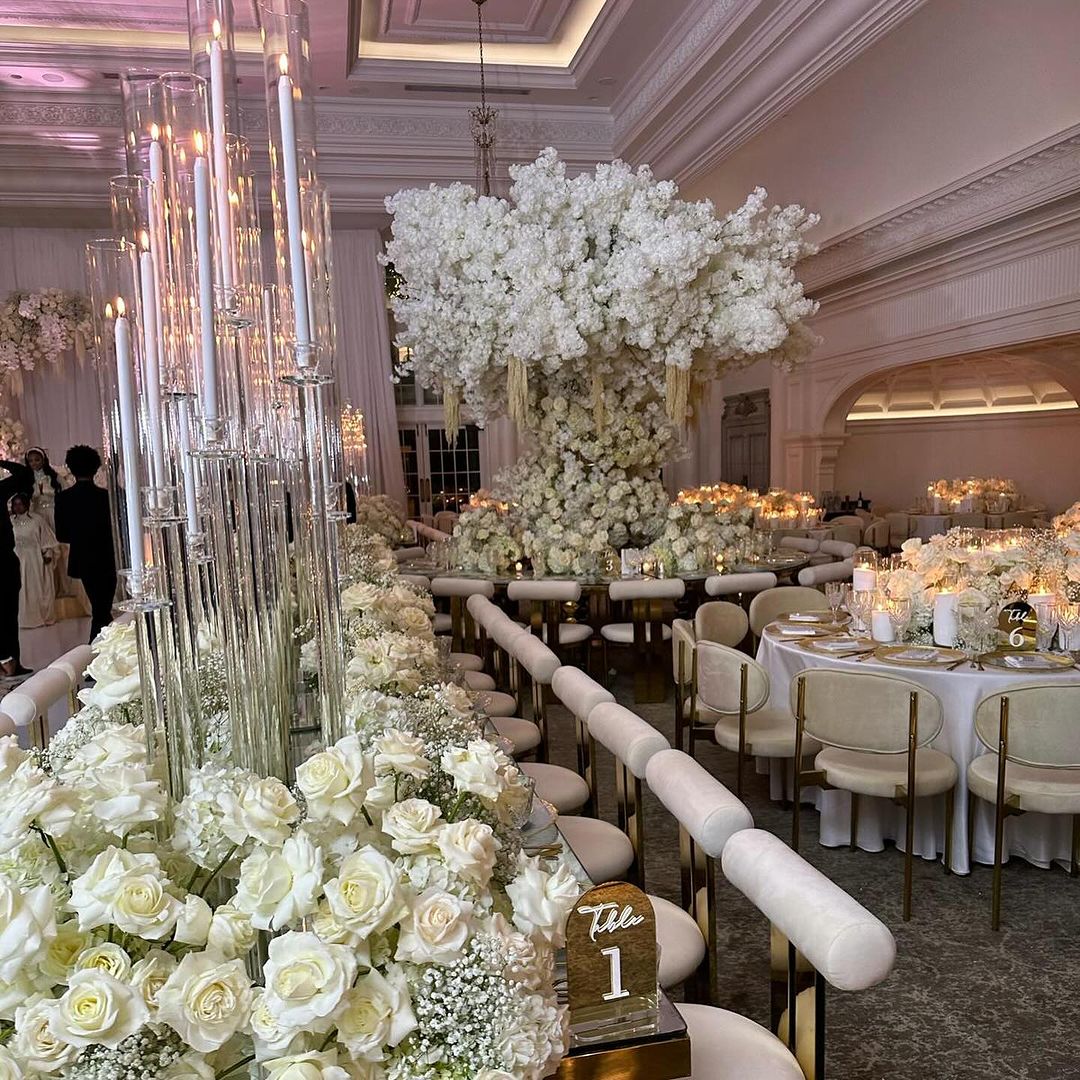 Their wedding was lavish and star-studded, with white florals that painted the room, and glass candles that felt romantic and sacred.