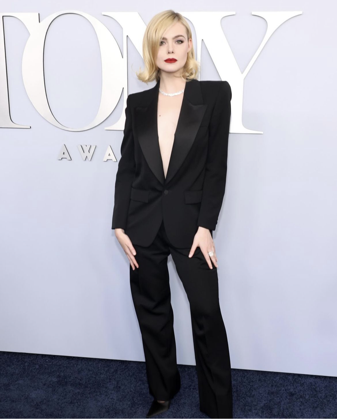 Elle Fanning looked strong and empowering in a black Saint Laurent power suit while Billy Porter offered an innovative spin in his black Robert Wun suit jacket that was perfectly embellished.