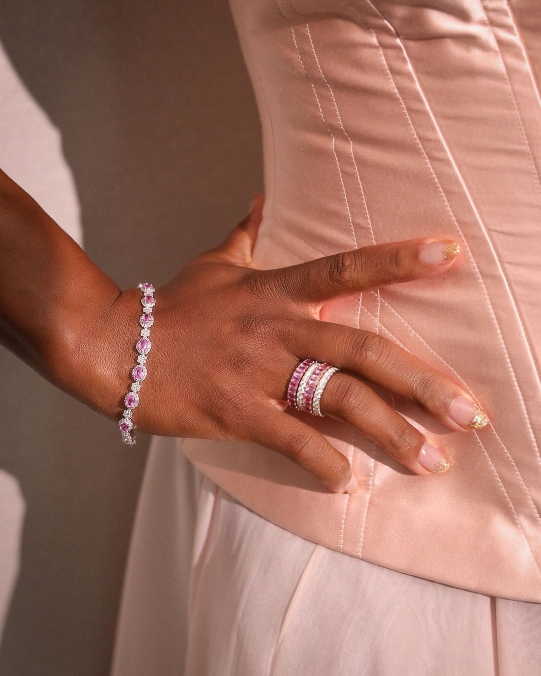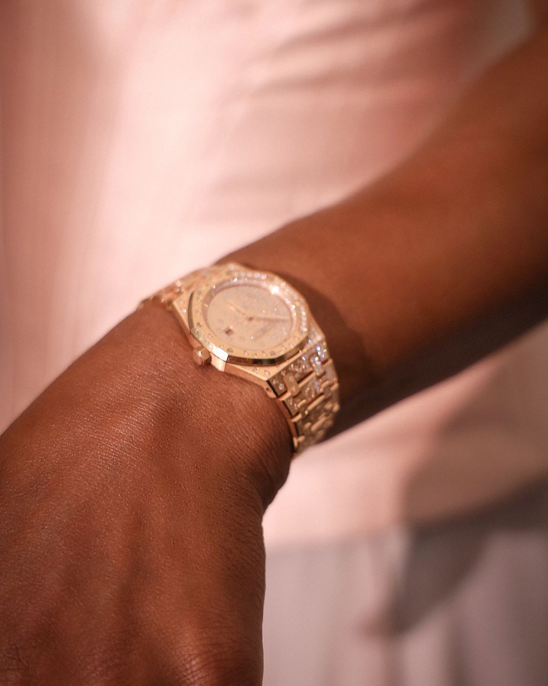 When it came down to her jewelry, the tennis superstar was iced out with diamonds including a precious pink diamond necklace with the matching earrings and most delicious wrist candy. Her gold watch was also diamond studded and shone brightly.