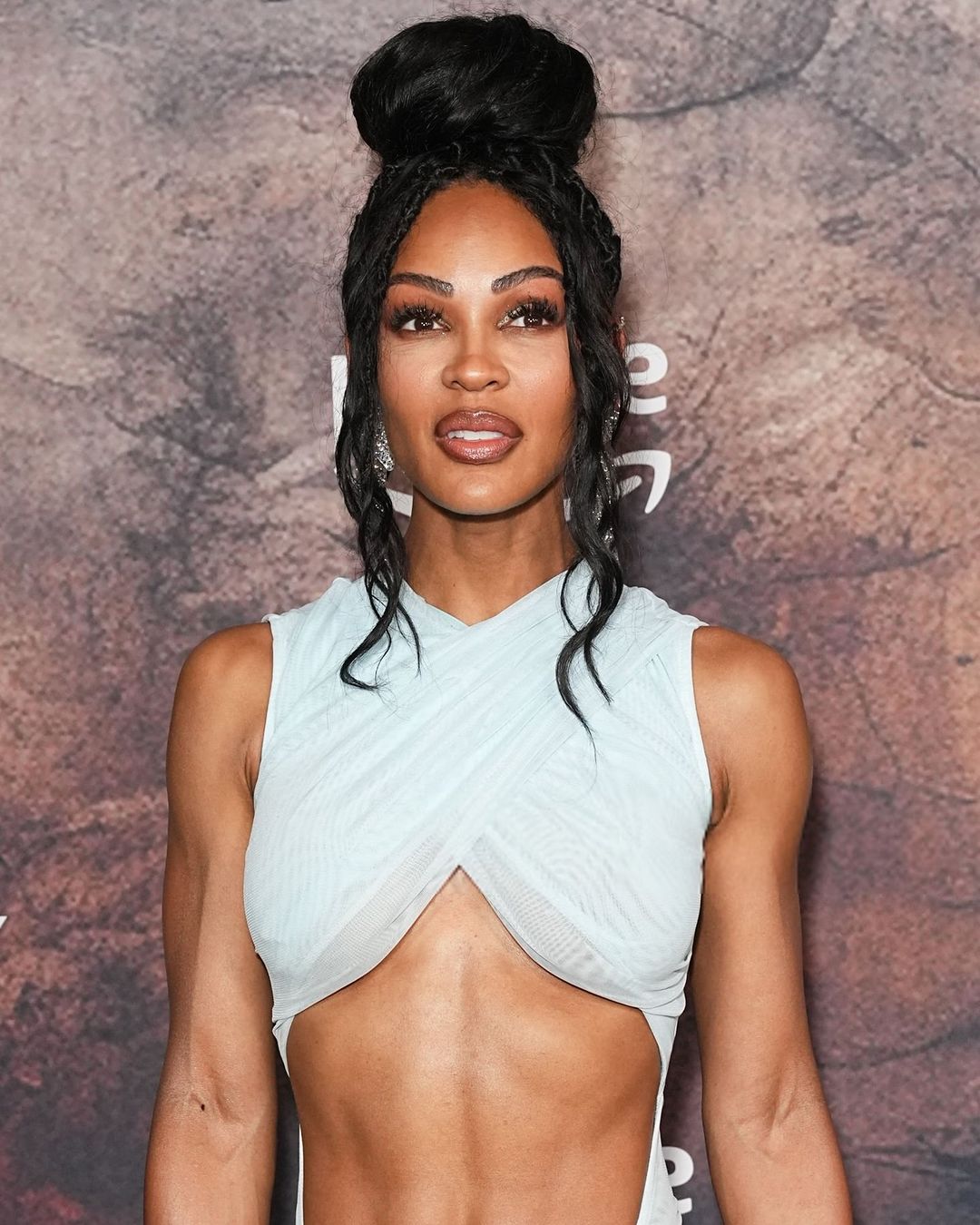 On the black carpet , Good looked exquisite in a $2,600 LaQuan Smith powder blue dress that had criss-cross draping.