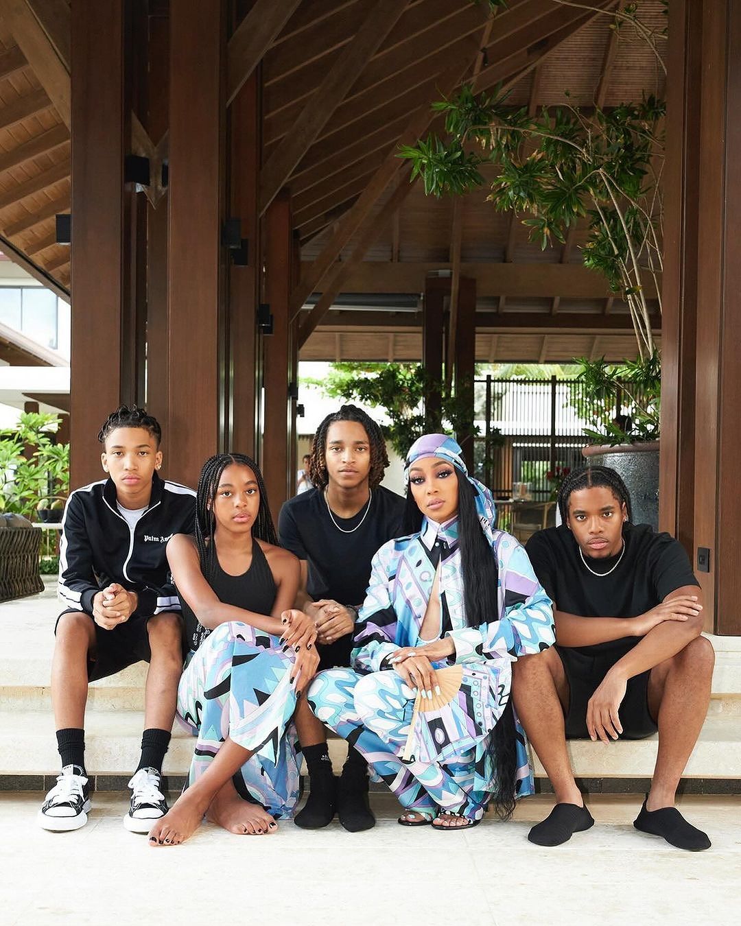 In addition to posing next to her mother and daughter, Monica also was captured with her sons inside of the Punta Cana resort. Contrary to the lavender and mint hues, her son’s opted for black and white keeping things on the simple side.