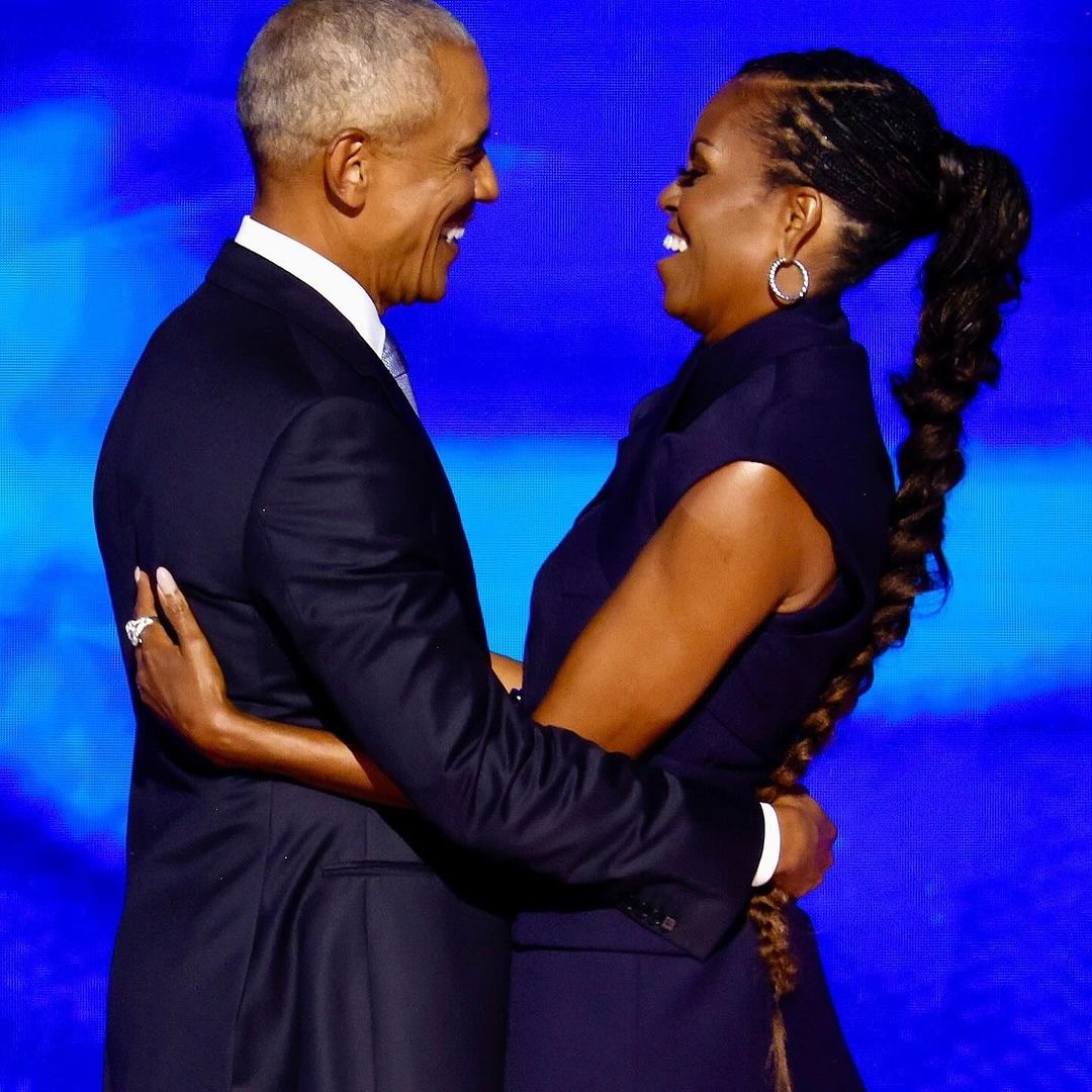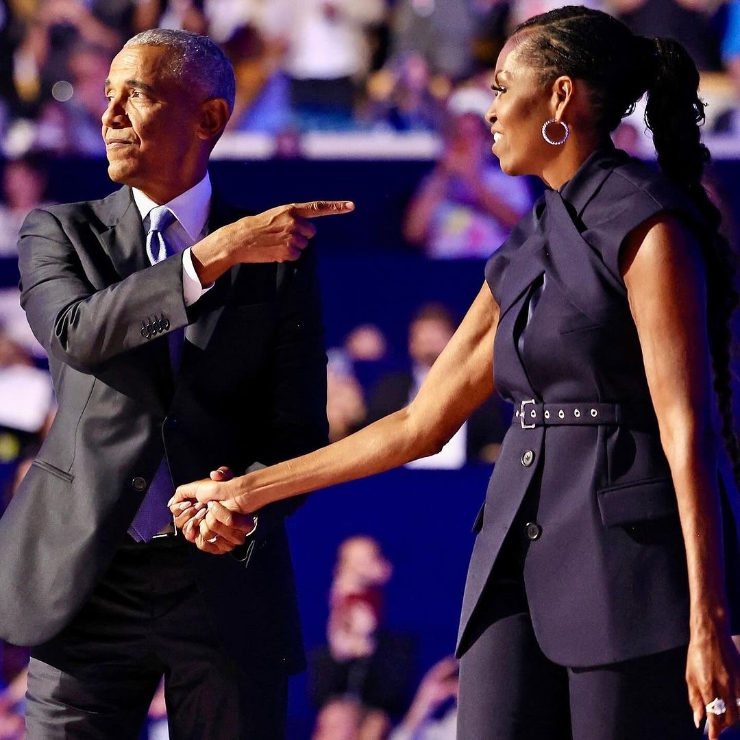 She was joined by former President Barack Obama, who was dapper in a suit.