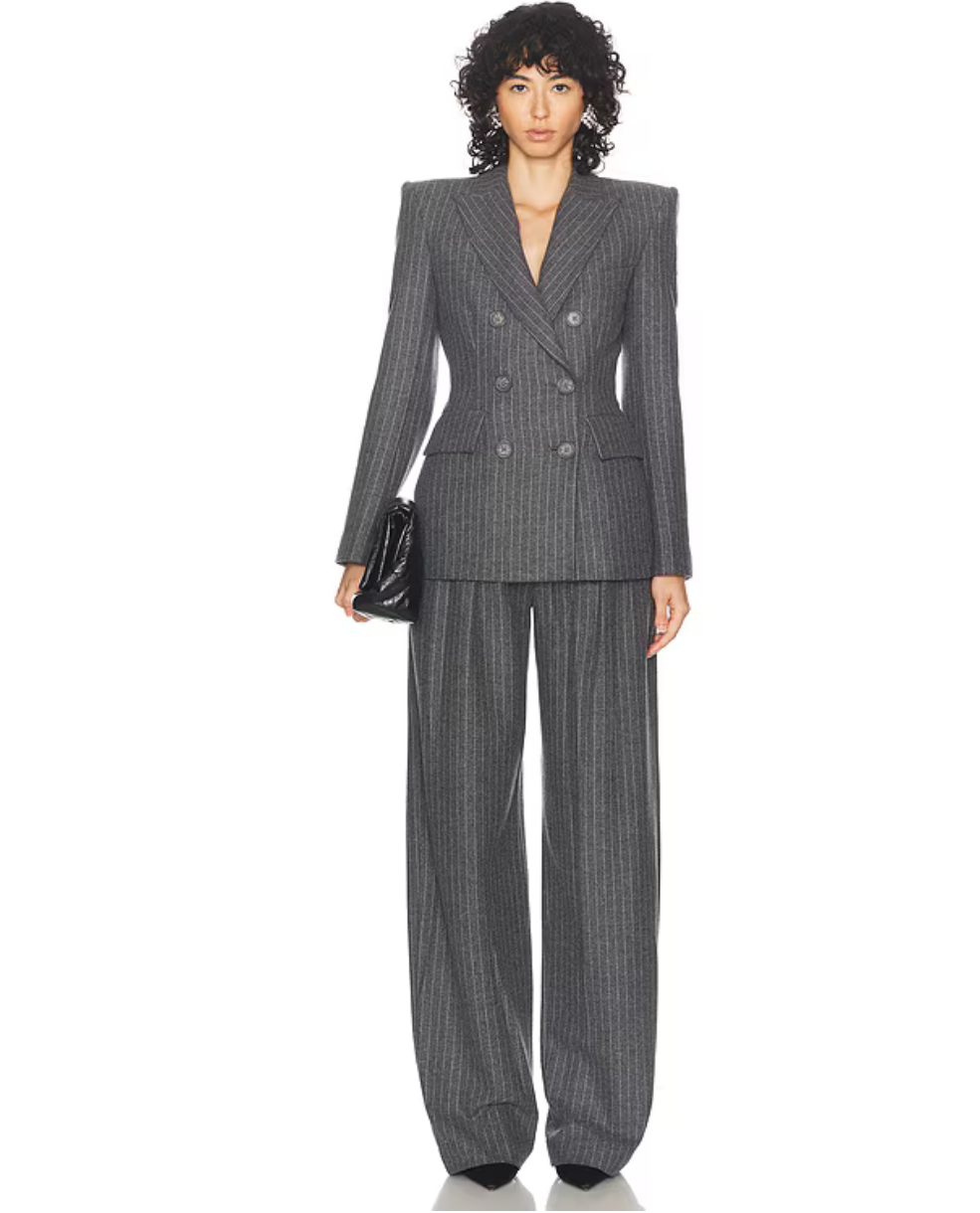 @linseydavis moderated the #presidentialdebate wearing an @alexperryofficial gray pinstripe suit ($2,400 jacket and $1600 trousers), styled by @diandretristan .