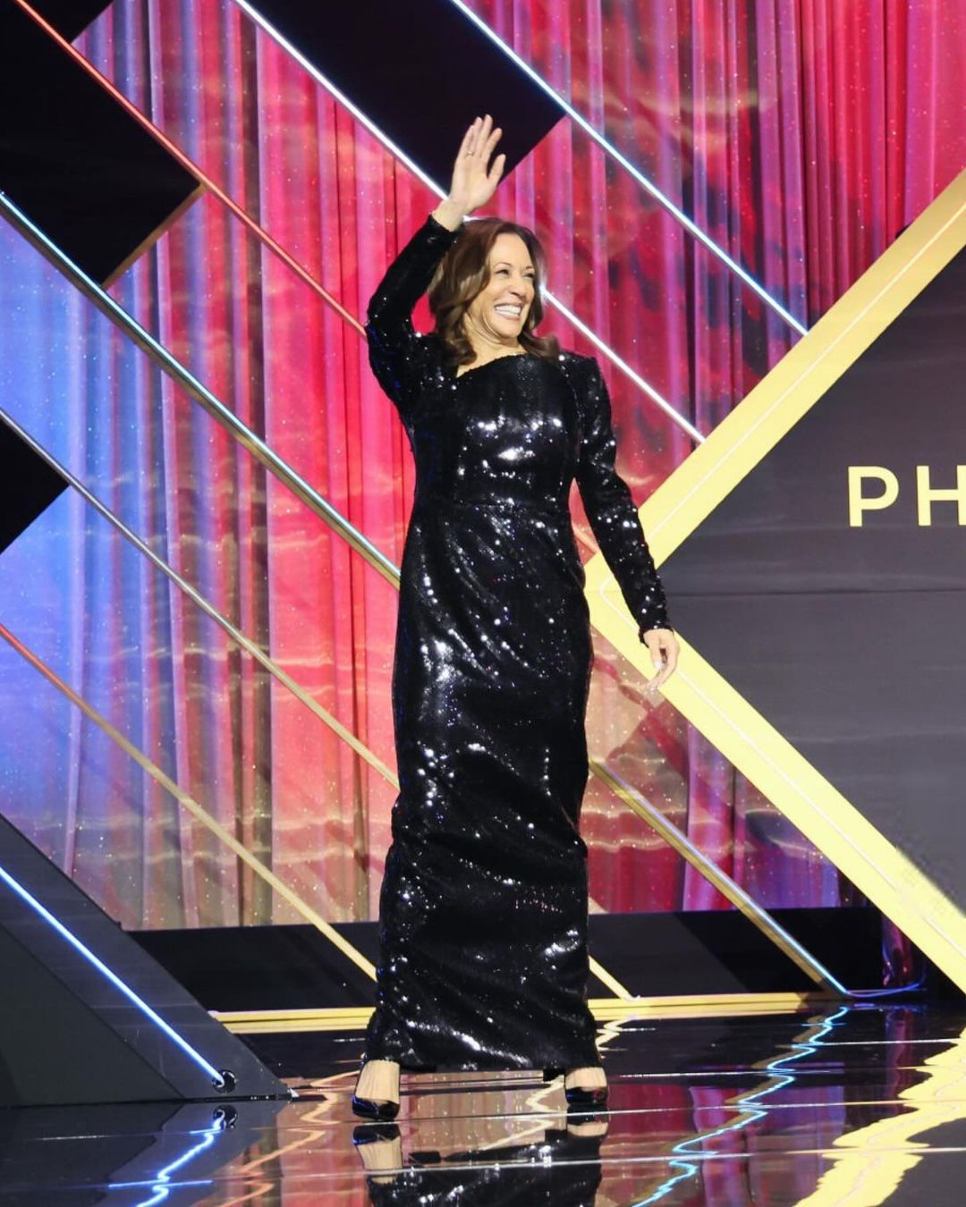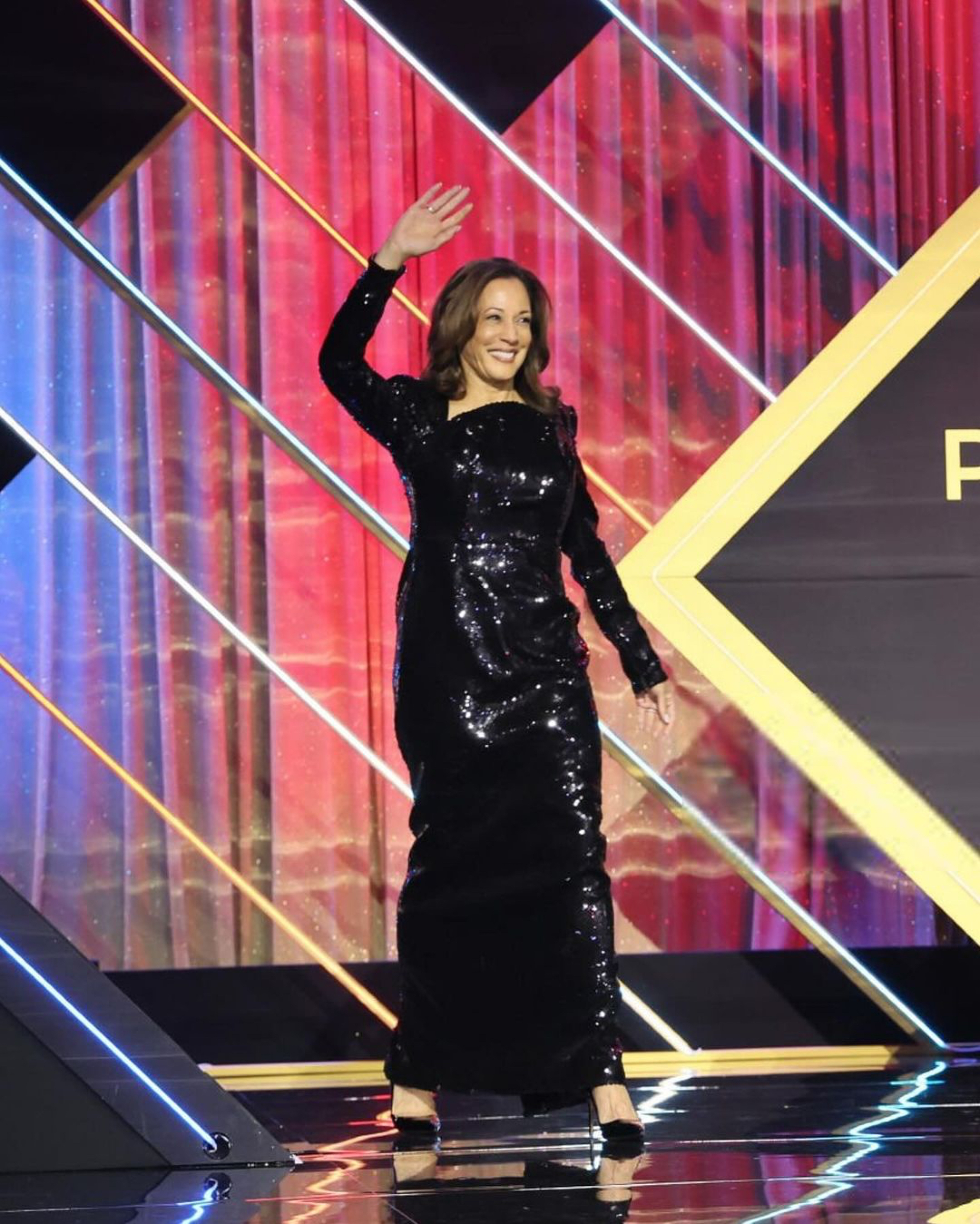 Ms. Harris has been using her platform to support black designers! This look was custom made just for her.
