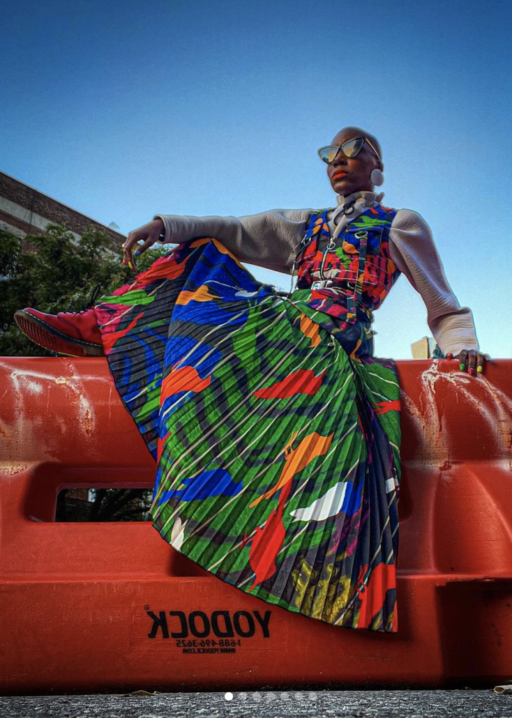She expresses, “I’m a connoisseur of vintage pieces and secondhand shopping, so I most shop at stores like Buffalo Exchange, L Train Vintage, and Crossroads Trading.” In addition to her affinity for vintage apparel, Shaquita is also the designer of her own brand, entitled, AART NYC. Her brand sells a variety of dresses, graphic tees, joggers, and accessories printed in multicolored and bright patterns.