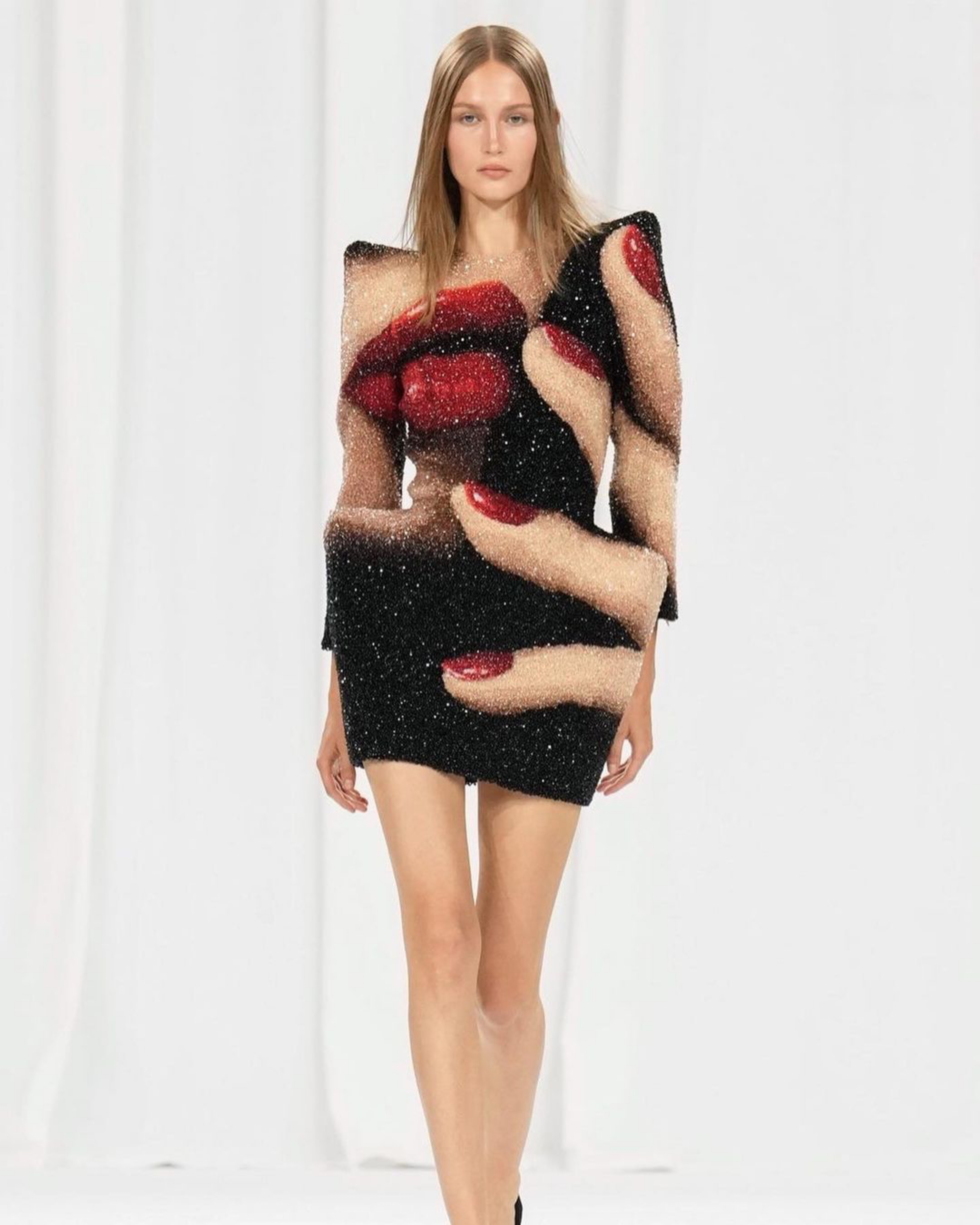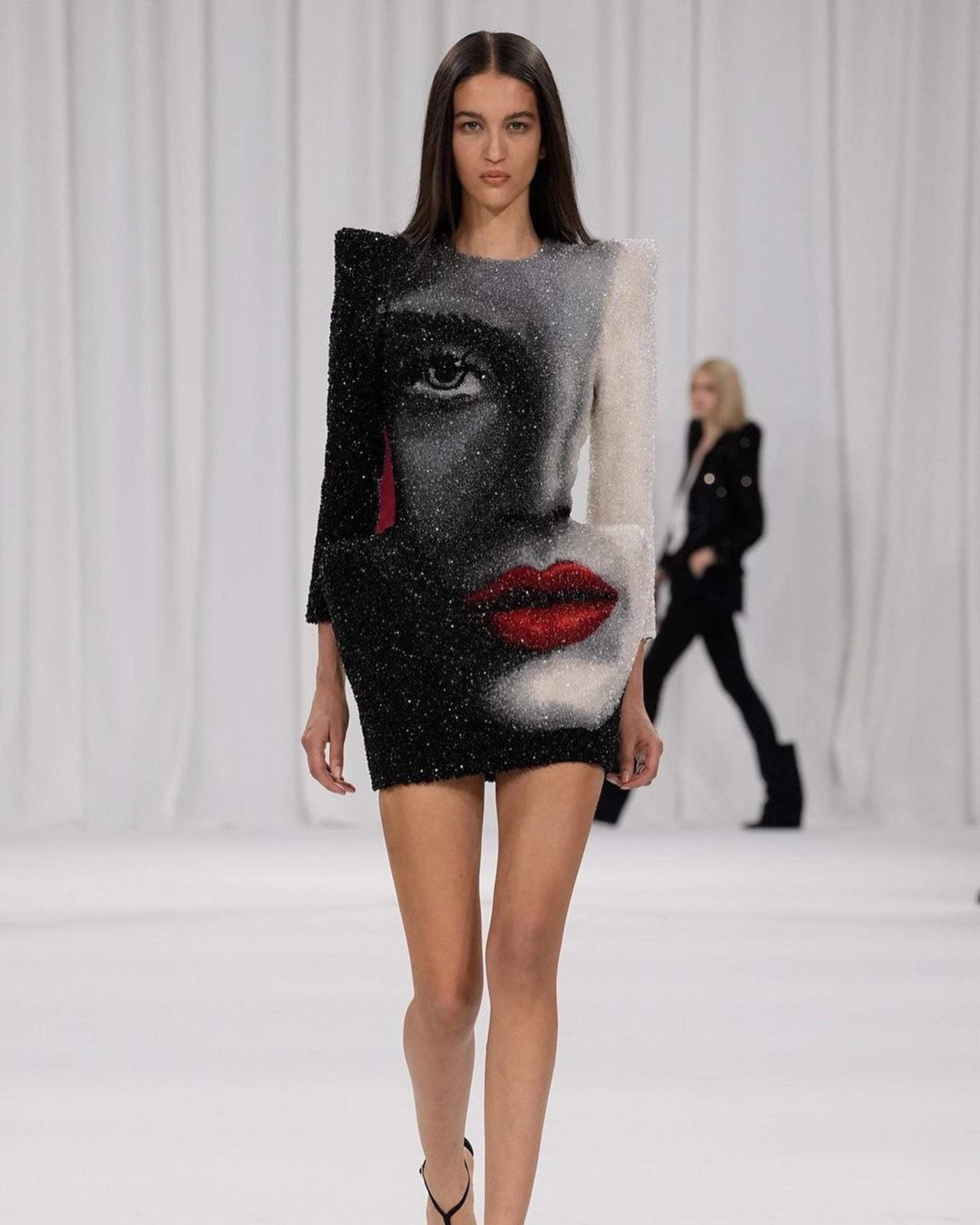 What followed were dresses decorated with feminine faces, and shifts sporting distinctly Parisian signature stripes, elevated and embellished in a way only Balmain could.