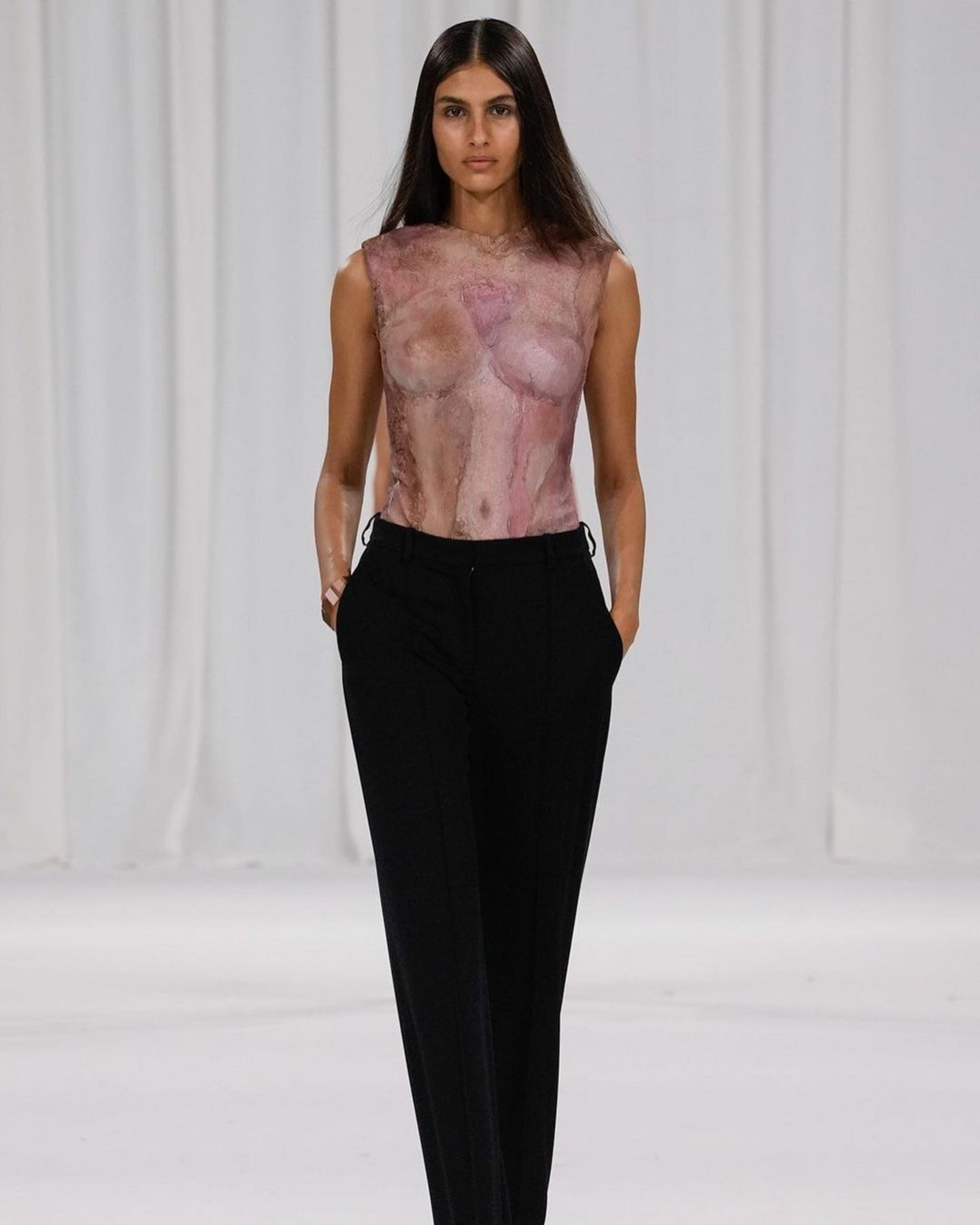 Balmain’s Spring/Summer 2025 offering was more wearable than most. Pointy shouldered blazers in black paired smartly with silk blouses and tailored pants in wool and leather.
