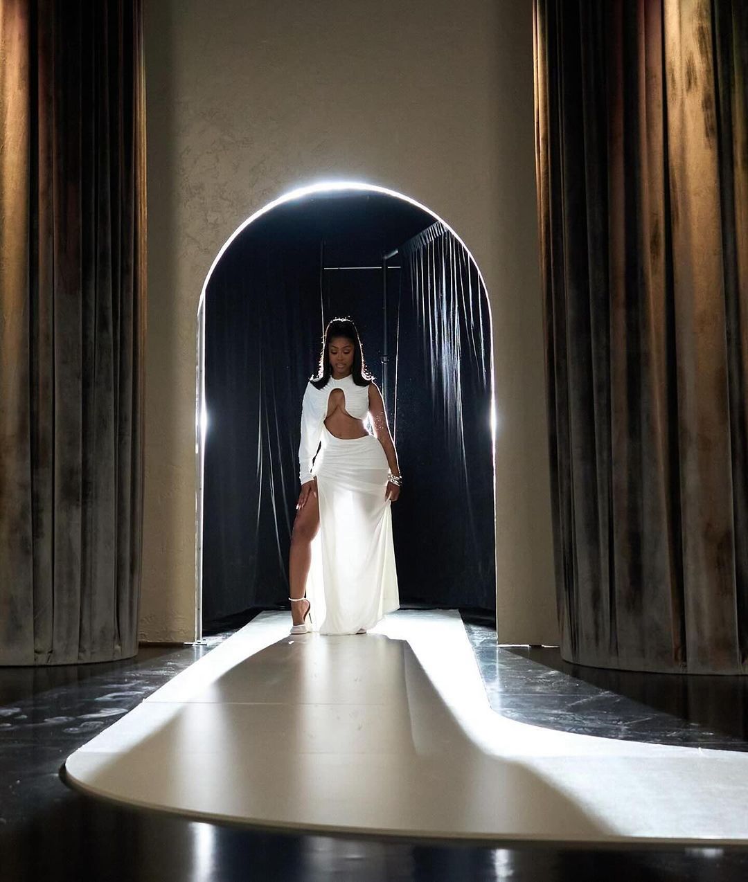 For the latest episode of her prominent Youtube series, she made a fashion statement in a white Christopher Esber dress that was sickening on the Miami native.