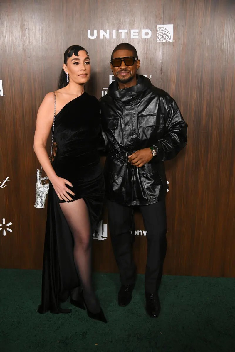 Usher who was honored for being a global visionary joined alongside his wife on the carpet in an all black Ferragamo look that looked sporty yet polished and sophisticated. His wife opted for a black velvet asymmetrical gown, with sheer tights and velvet stilettos.