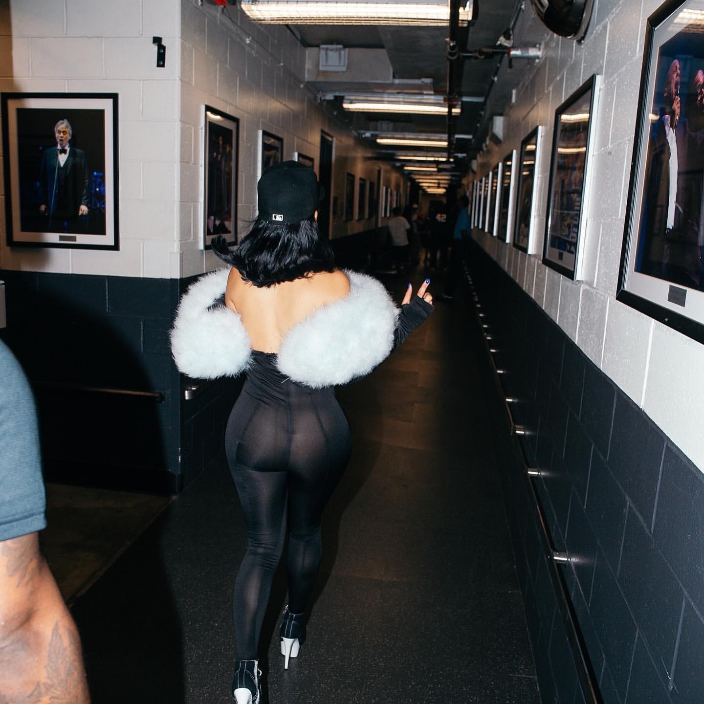 While Mariah wore the look with sneaker heels and a Yankees hat, Ari wore simple sandals and a sparkly Chanel bag.