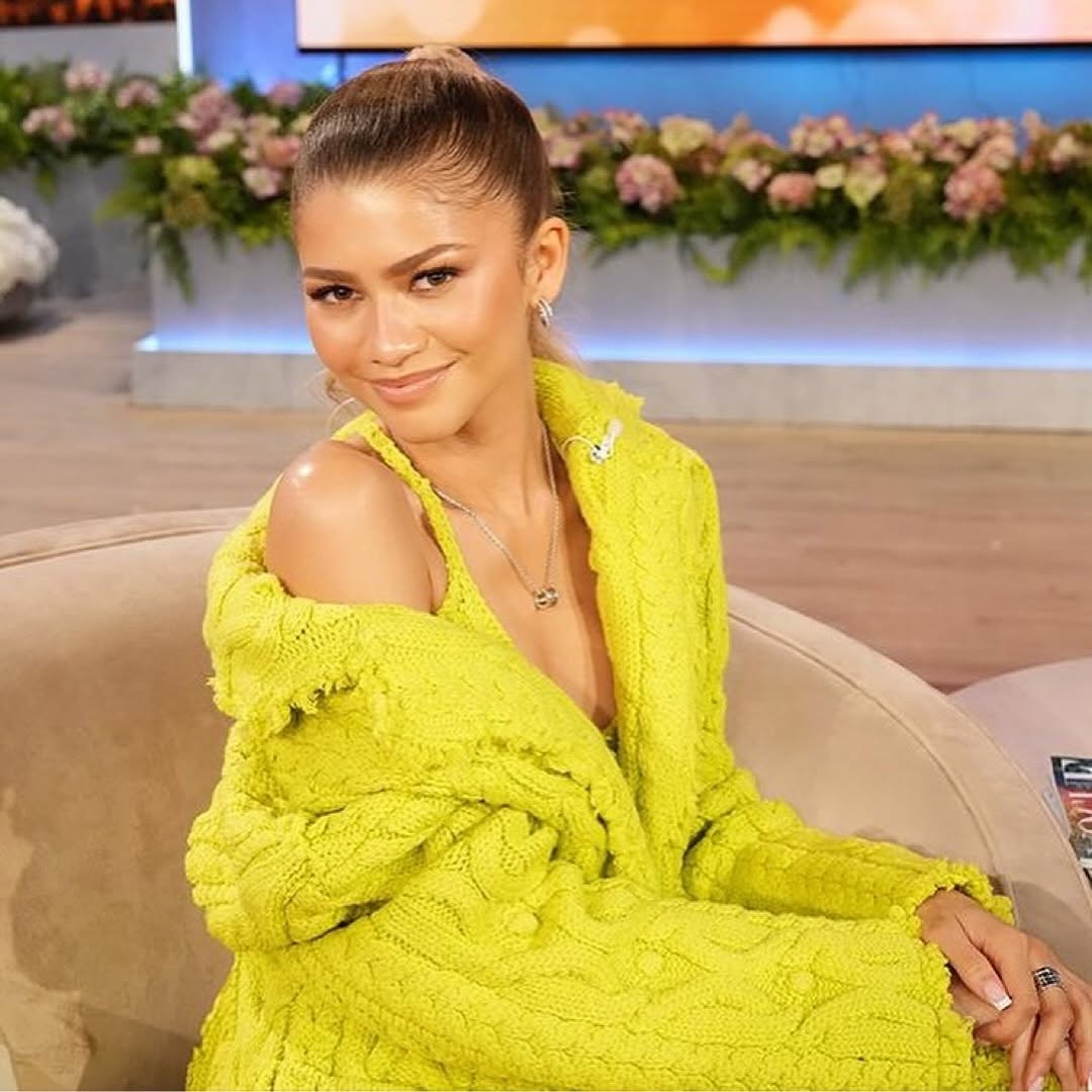 Fashion Icon, Zendaya was captured earlier this year in the ultra bright set while promoting her film âChallengersâ on the Jennifer Hudson Show. Keeping her hair pulled back in a high pony tail, with minimal accessories, she allowed her cardigan to hang off her shoulder for the perfect chic moment.