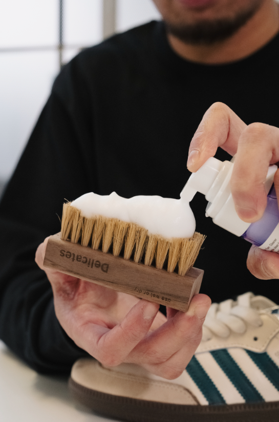 You can use sneaker wipes to quickly remove basic dirt and grime. A soft brush also works well for removing caked-on mud and dirt that can discolor your sneakers. Just make sure to use gentle strokes with the brush to avoid damaging the material.