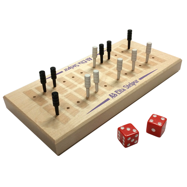 Ad Elta Stelpur is very unique “running fight” game is played on a Backgammon-style board using two standard dice and 6 distinct pieces per player. This ancient Icelandic game, whose name translates as “Chase the Girls," was likely inspired by games of Roman occupation forces in Britain. The second phase of the game introduces an entirely new form of movement for a player reduced to just one piece. Made in the USA for two players age 8+.