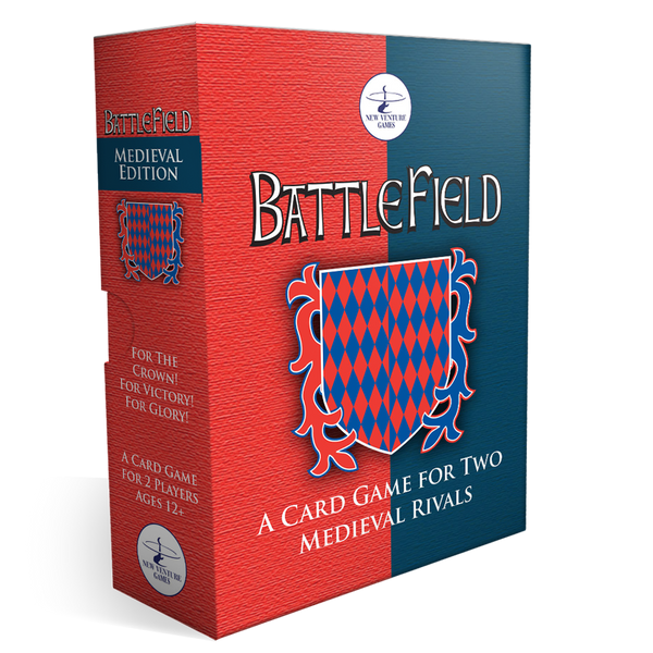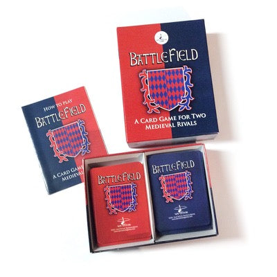 The first of the Battlefield game series, this two-player card game simulates a conflict between powerful Medieval armies of equal strength, each player having a deck of 72 cards. Under your command, the leaders of your military units are called into battle, and even the peasants will rally in the name of your King and the Royal Family. Deploy your advance units, assign your reinforcements, and deal with the hand of fate as the weather and other effects can influence the outcome of each skirmish. Archers, Knights, Cavaliers, Pikemen and more are in your control. The winners will survive to fight again, but the losers are consigned to the graveyard. Only one army will ultimately triumph for the glory of the King!