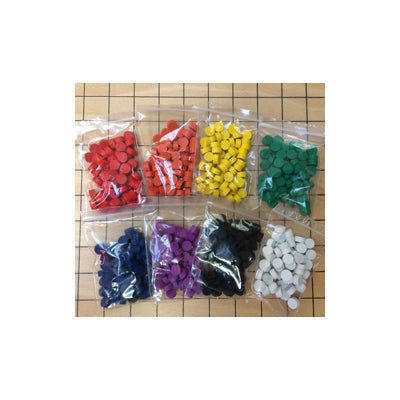 An expansion set of 480 colored wood pieces (60 each in red, orange, yellow, green, blue, magenta, black, white ... individually wrapped in ziplock resealable packets). Use these to increase your existing set of Gift 9 Points or to create an new assortment in a container of your choosing (drawstring bag, basket, Tupperware, etc.) and eliminate the cost of the wood slide-top box. Made in China. For ages 3+.